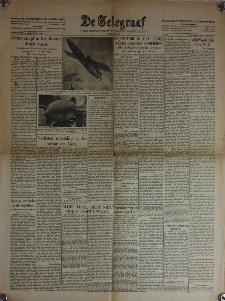 De Telegraaf donderdag 10 augustus 1944, 52 ste jaar...