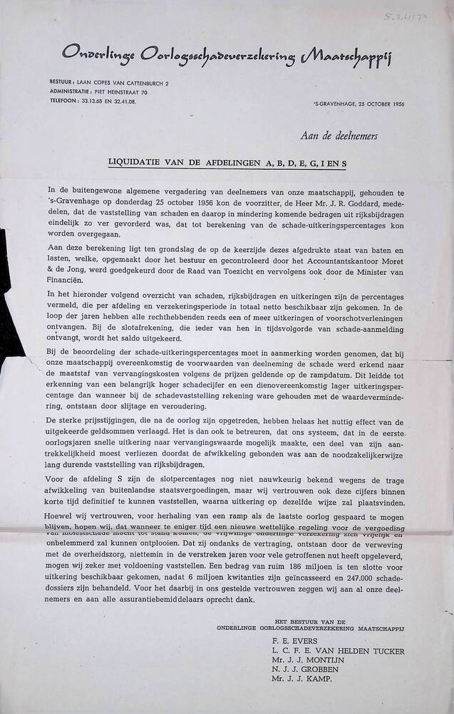 Circulaire Onderlinge Oorlogsschade Verzekering Mij....