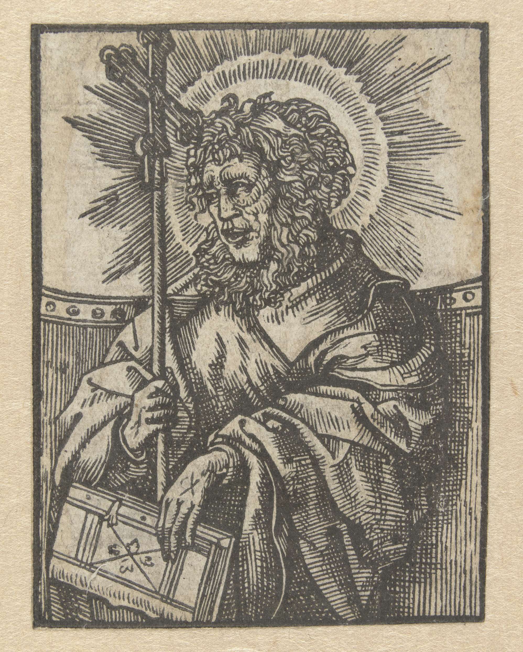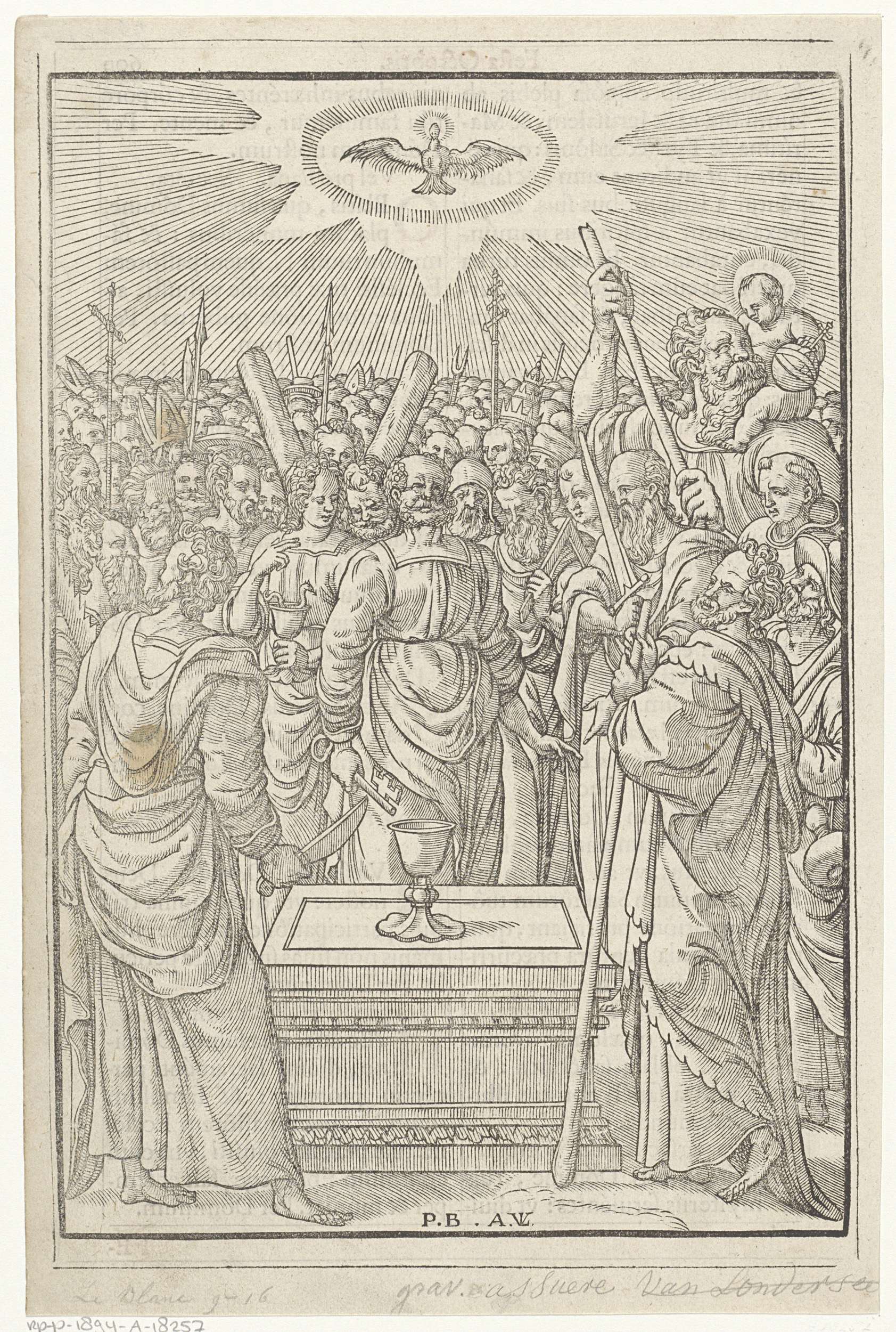 Petrus, Johannes en Paulus door andere heiligen omgeven