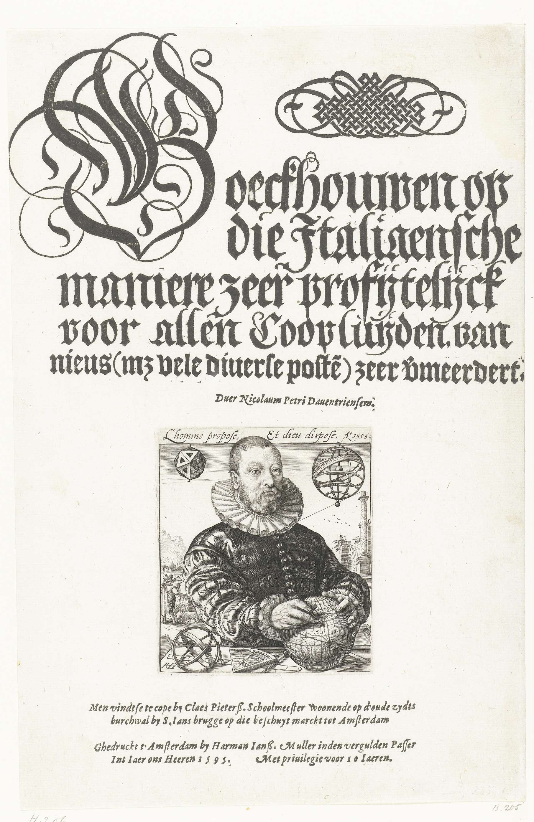 Titelblad met Johannes Teuschlein die zijn boek pres...