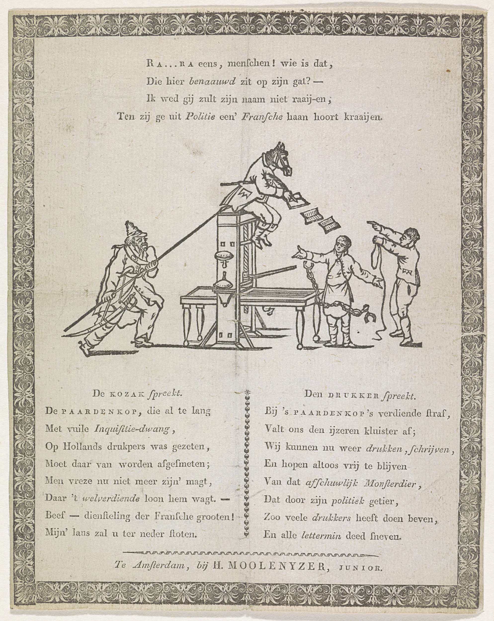 Spotprent op Van Ray, inspecteur van de boekhandel, ...