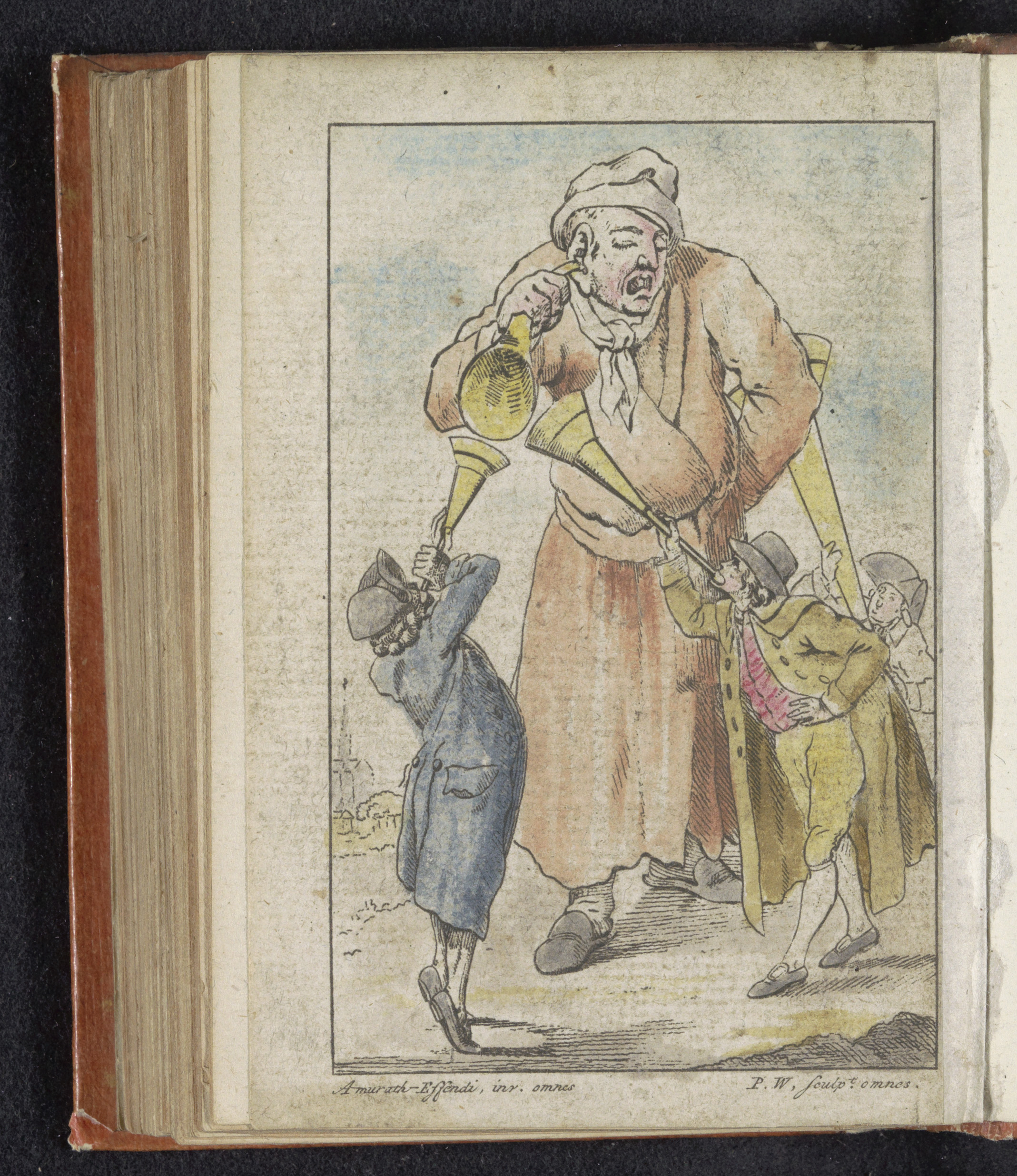 Grote man met oorhoorn (het volk) krijgt raad van dr...