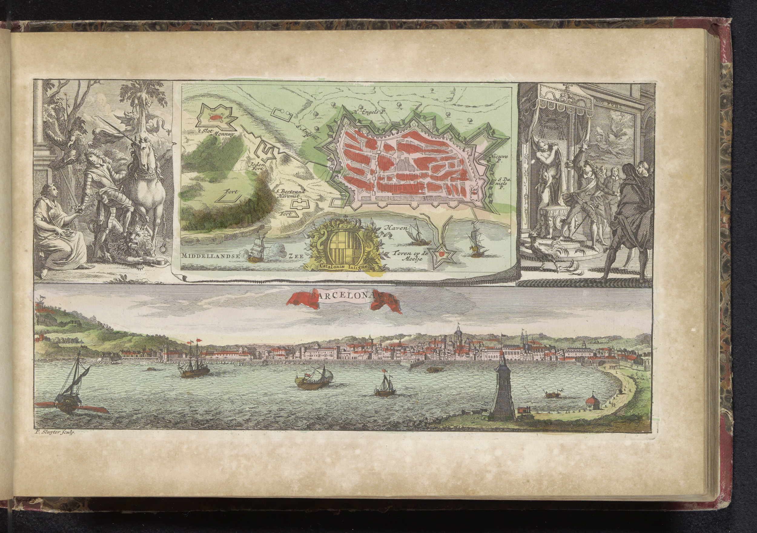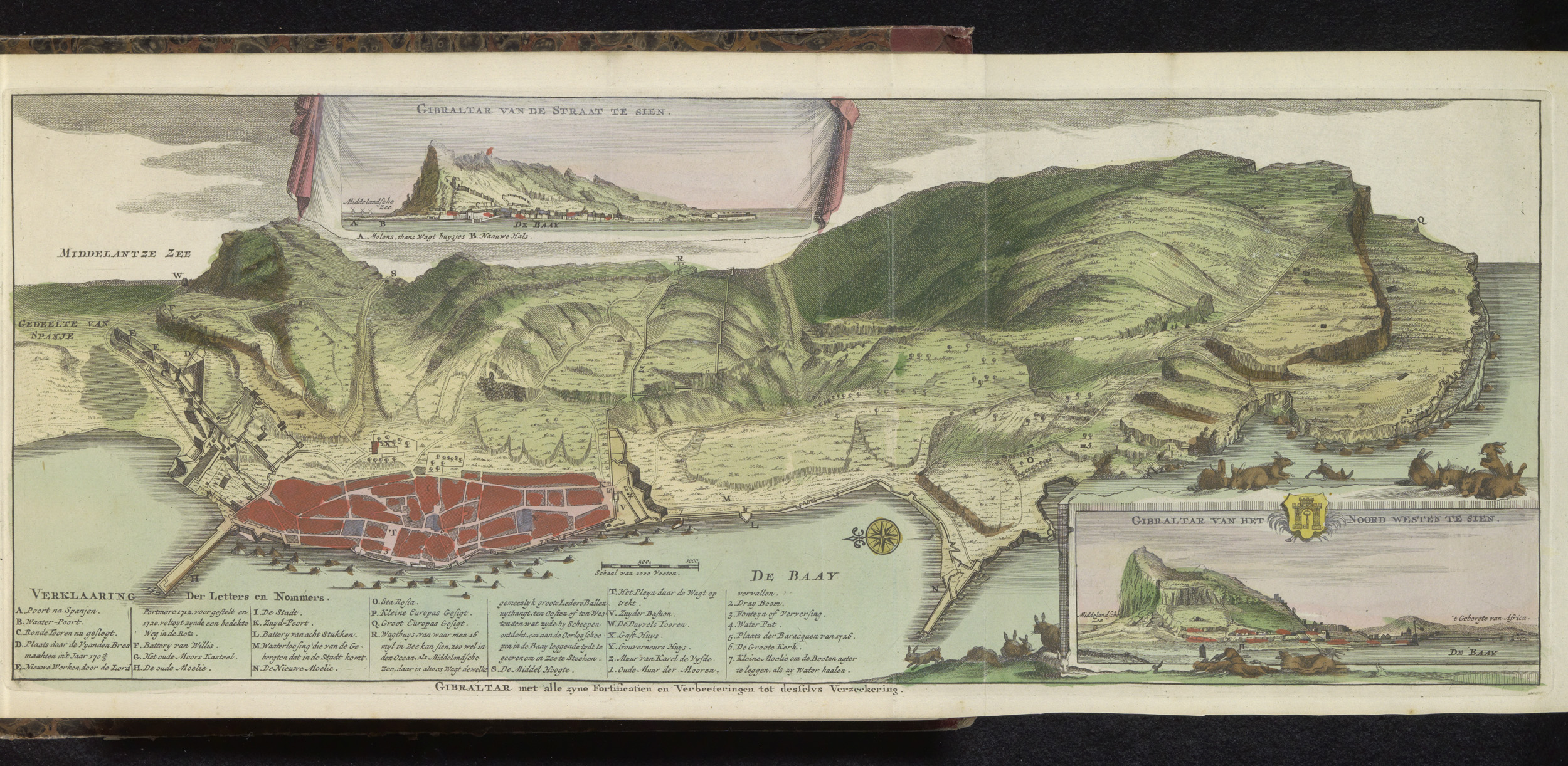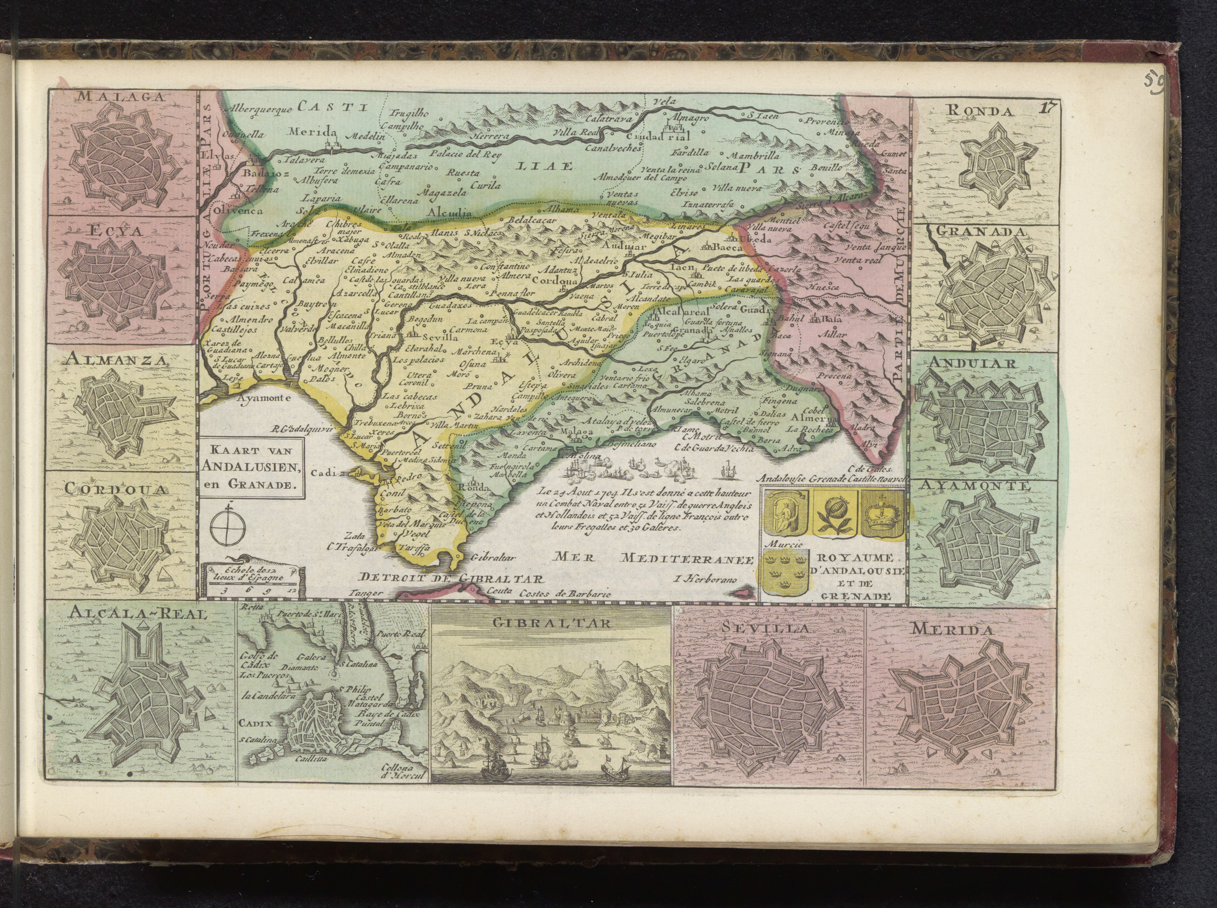 Kaart van Andalusië met de zeeslag bij Malaga, 1704
