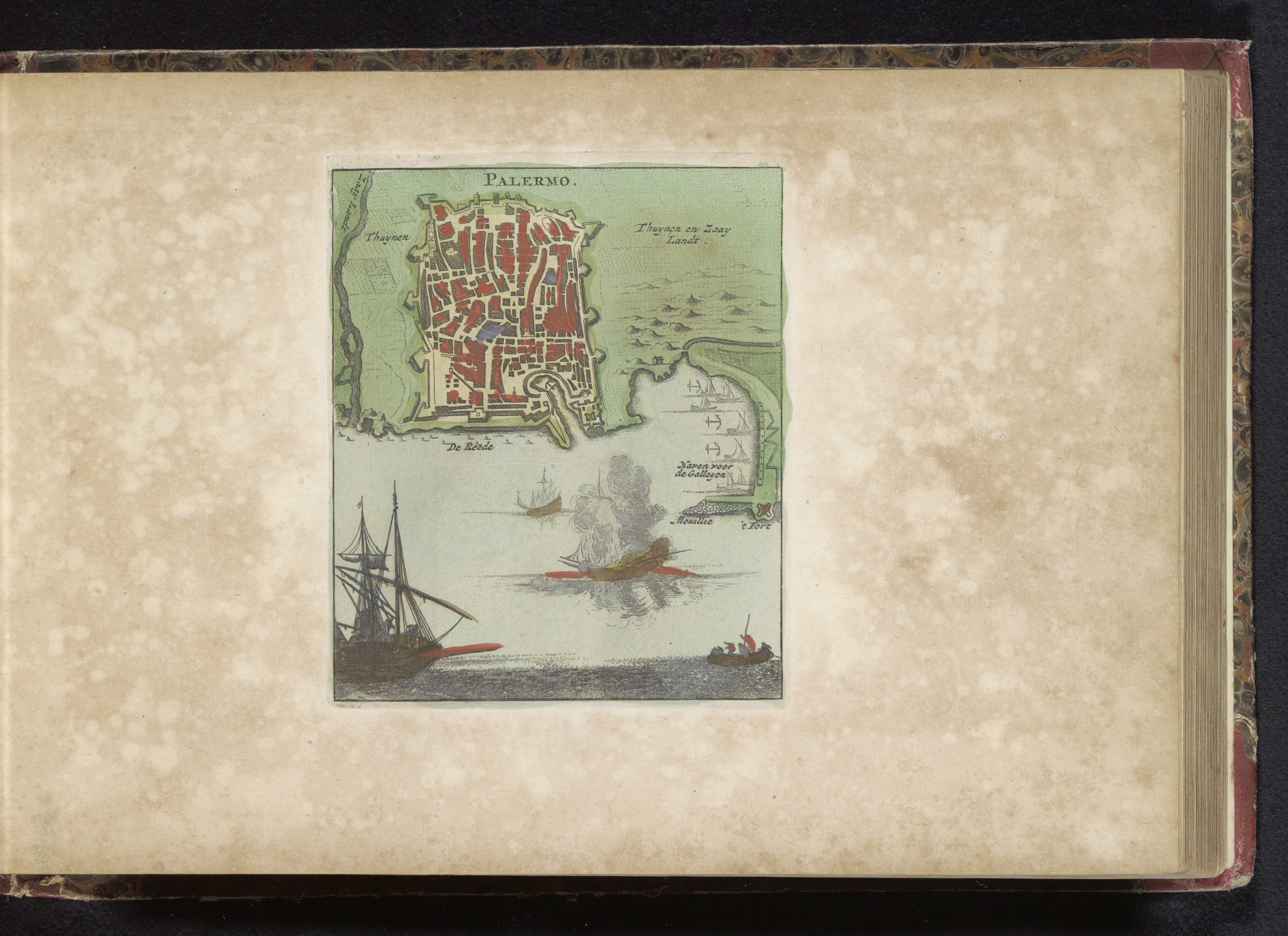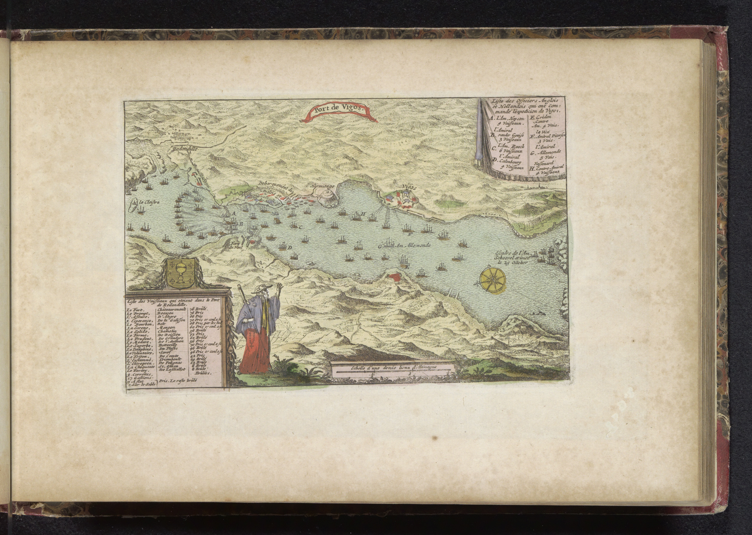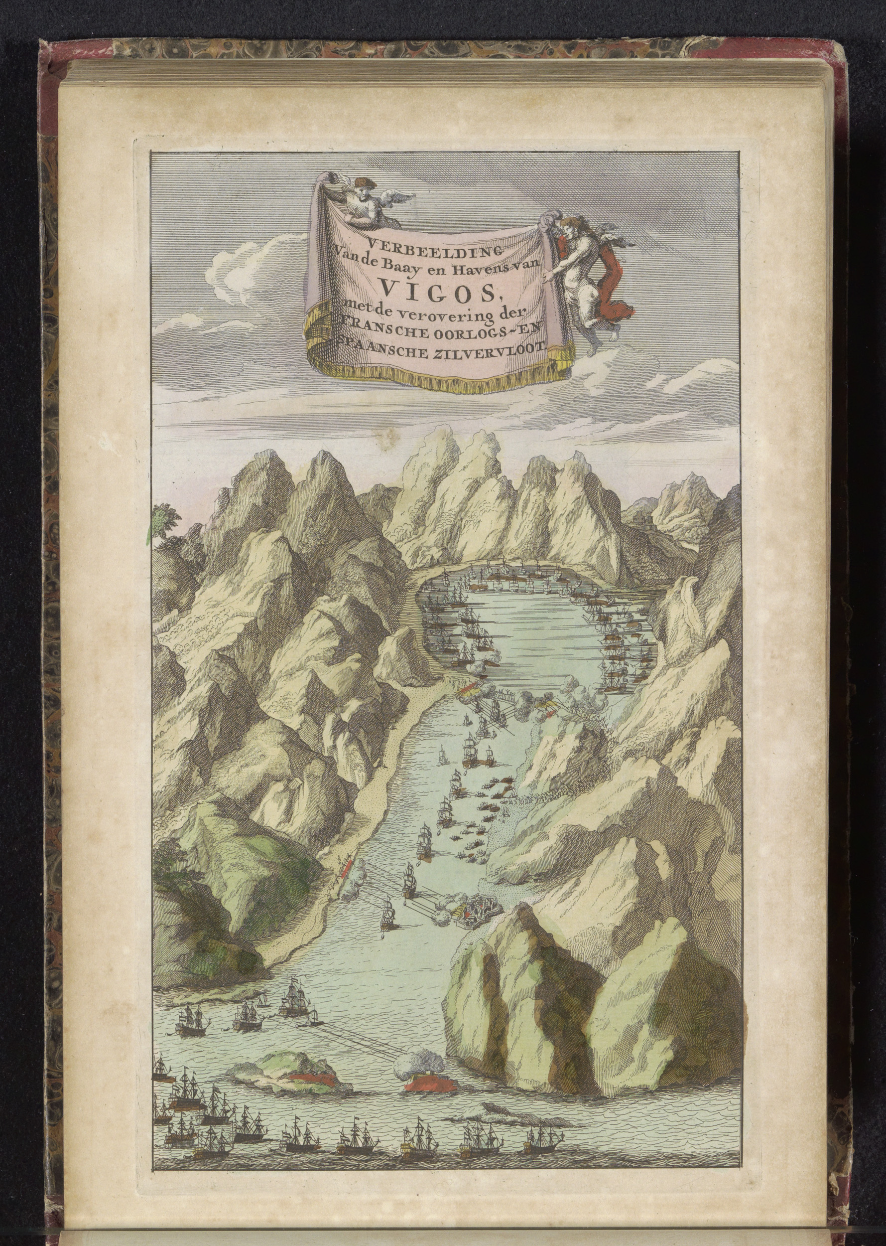 Kaart van Andalusië met de zeeslag bij Malaga, 1704