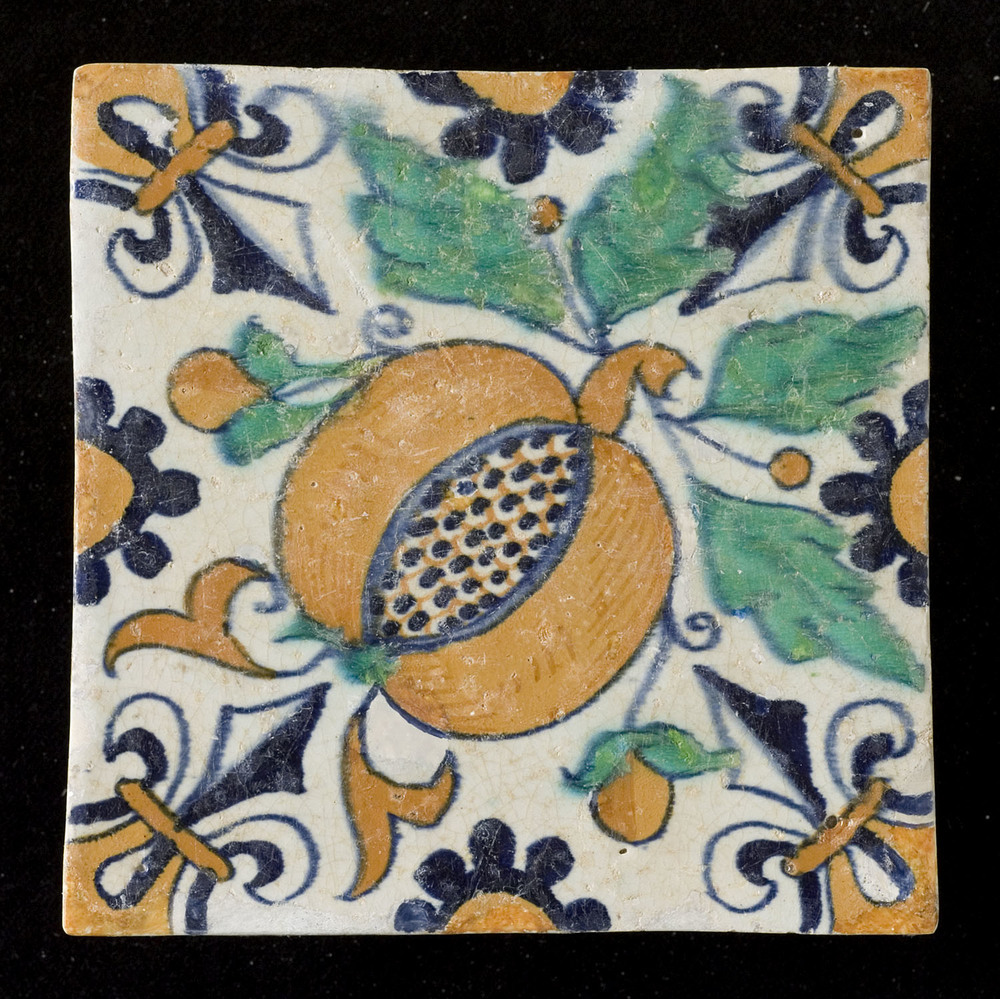 tegel van aardewerk met tinglazuur, voorstellende: o...