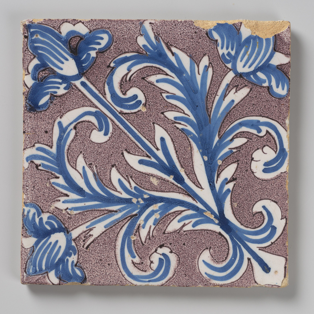 Tegel van aardewerk met tinglazuur, voorstellende: s...