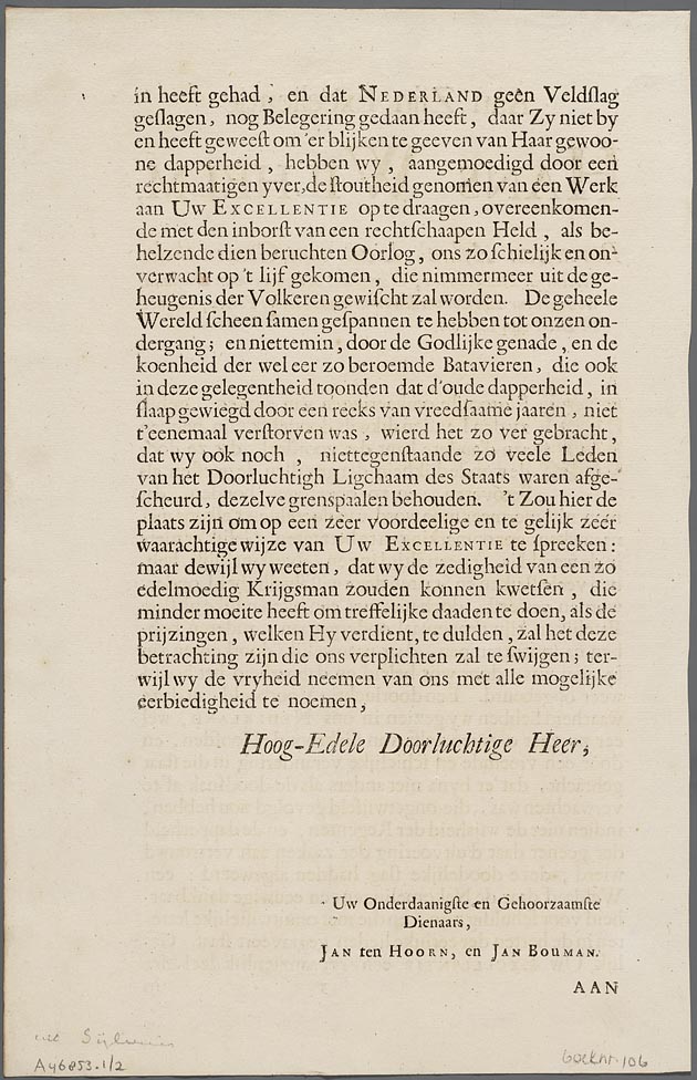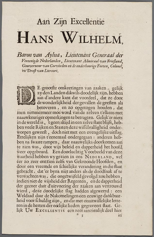 Opdracht "Aan zijn excellentie Hans Wilhelm, baron v...