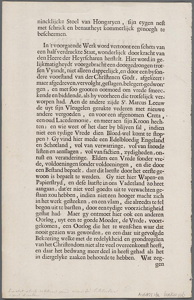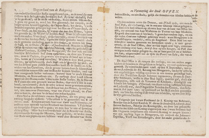 Blad met 2 tekstpagina´s uit "Historien onzes tyds b...