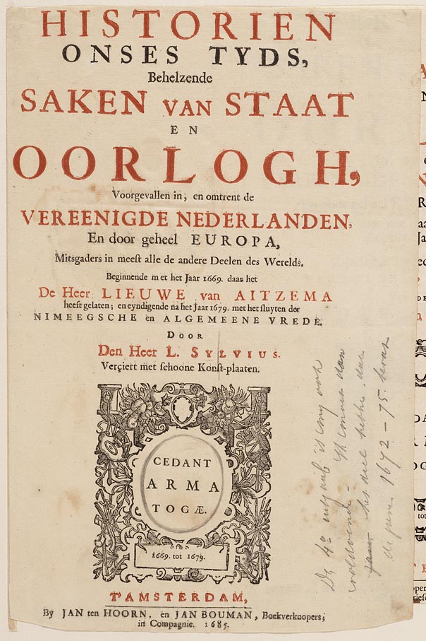 Titelprent "Historien onzes tyds behelzende saken va...