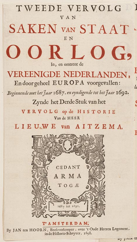 Titelpagina "Vervolgh van saken van staat en oorlogh"