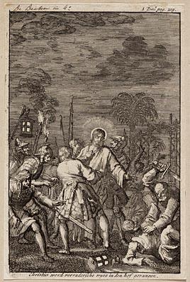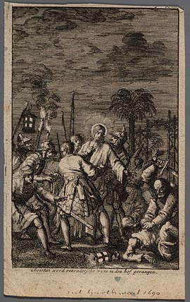 Jezus gevangen genomen in Gethsémané