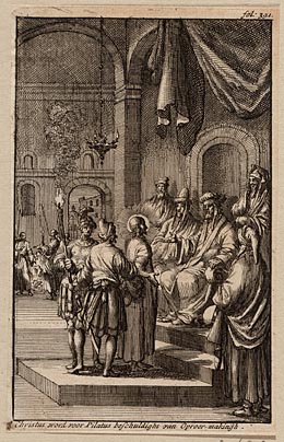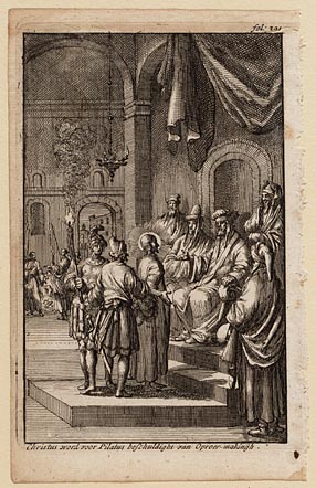 Christus word voor Pilatus beschuldight van oproer-m...