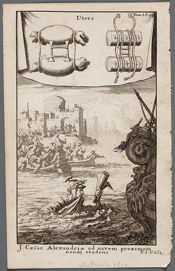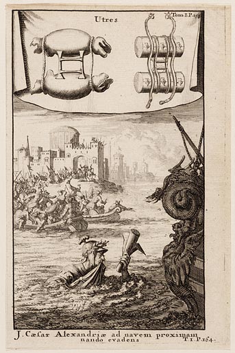 J. Caesar Alexandriae ad navem proximam nando evadens