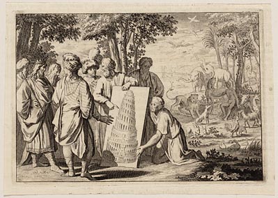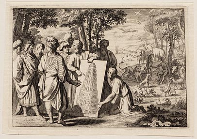 Afbeelding van het ontwerp van de toren van Babel op...