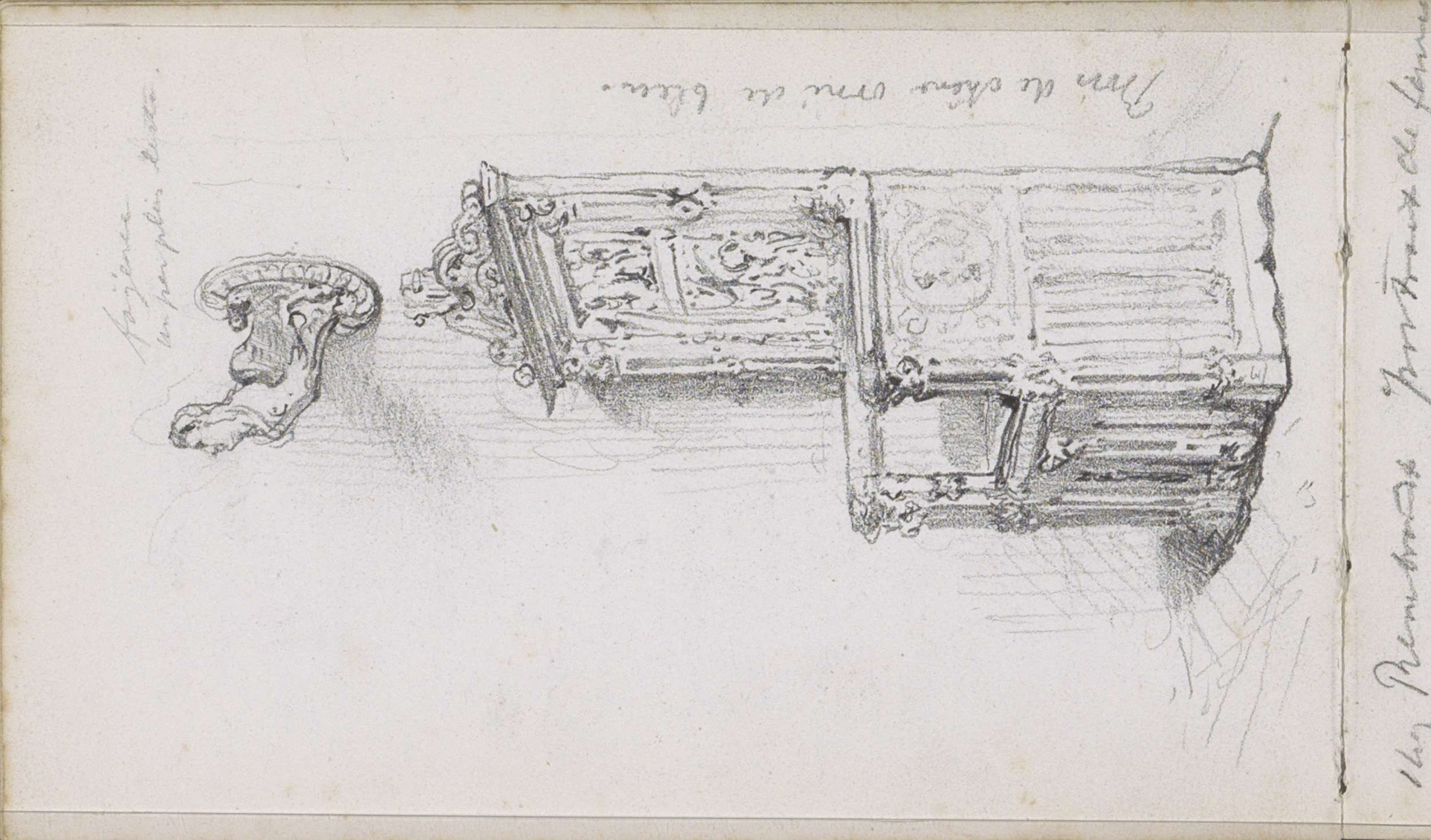 Gedecoreerde troon en een ornament, mogelijk een haa...