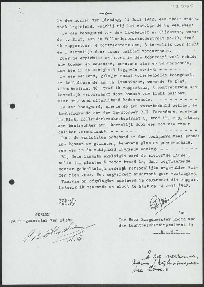 Rapport gemeente Elst 13/14-07-1942.