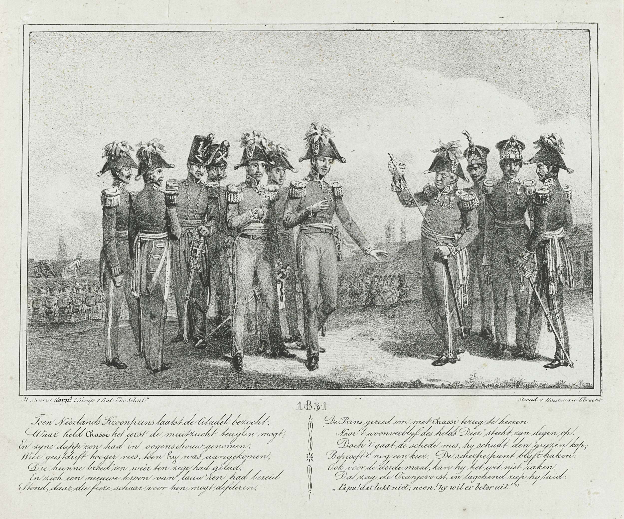 Generaal Chassé tracht tevergeefs zijn degen in de s...