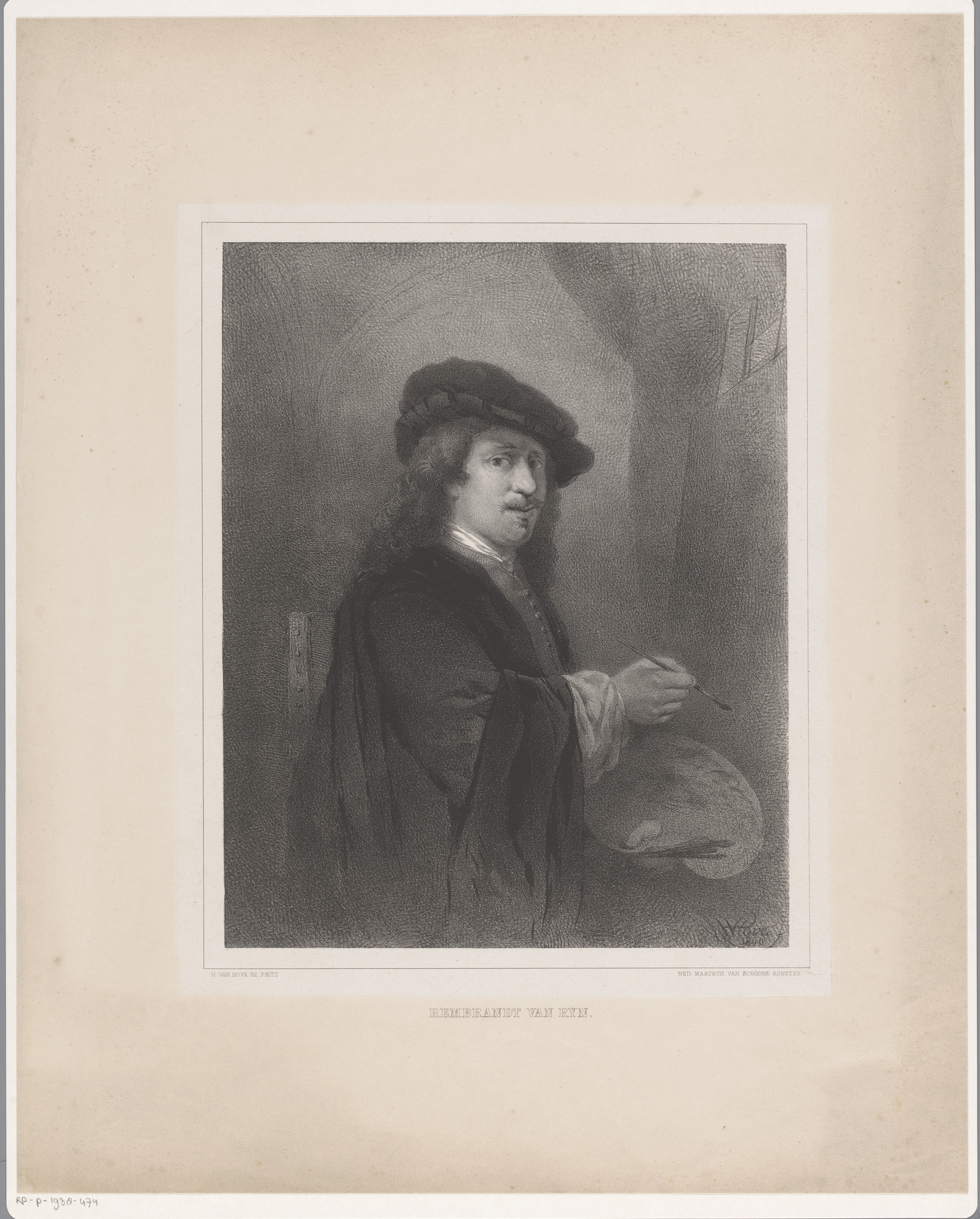 Portret van Rembrandt voor zijn schildersezel