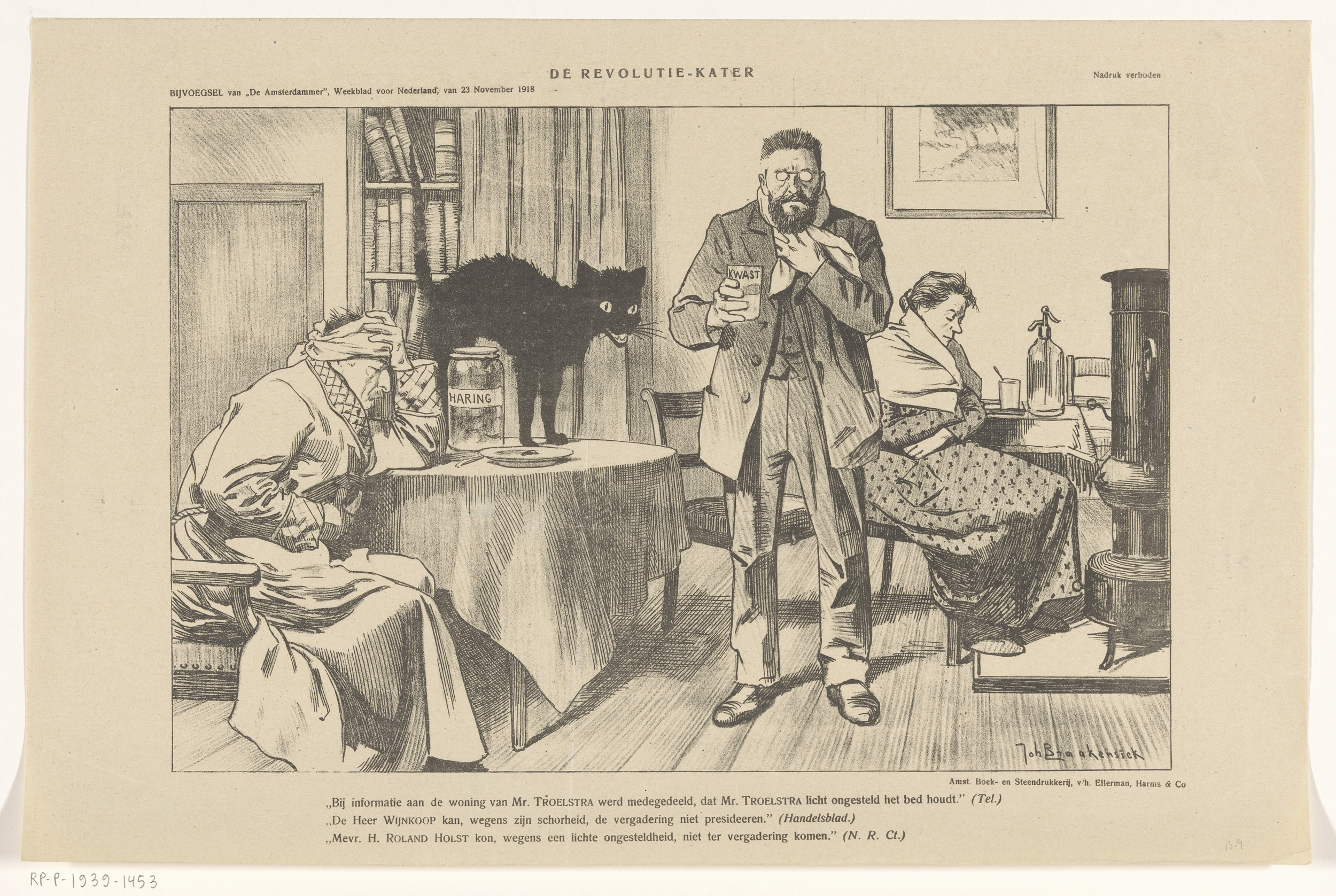 Spotprent op J.C. Backer, C. Seyn en S. van der Paau...