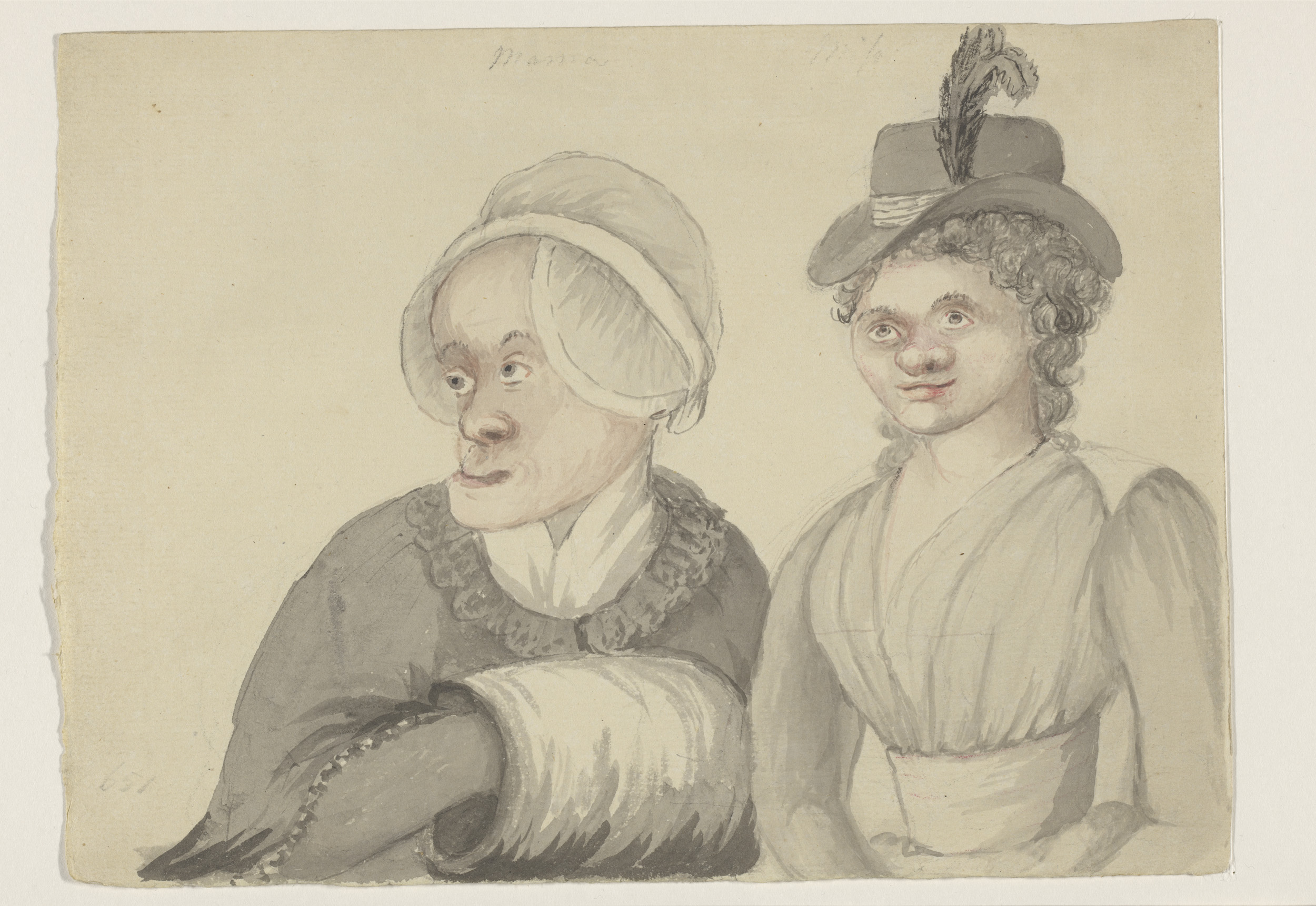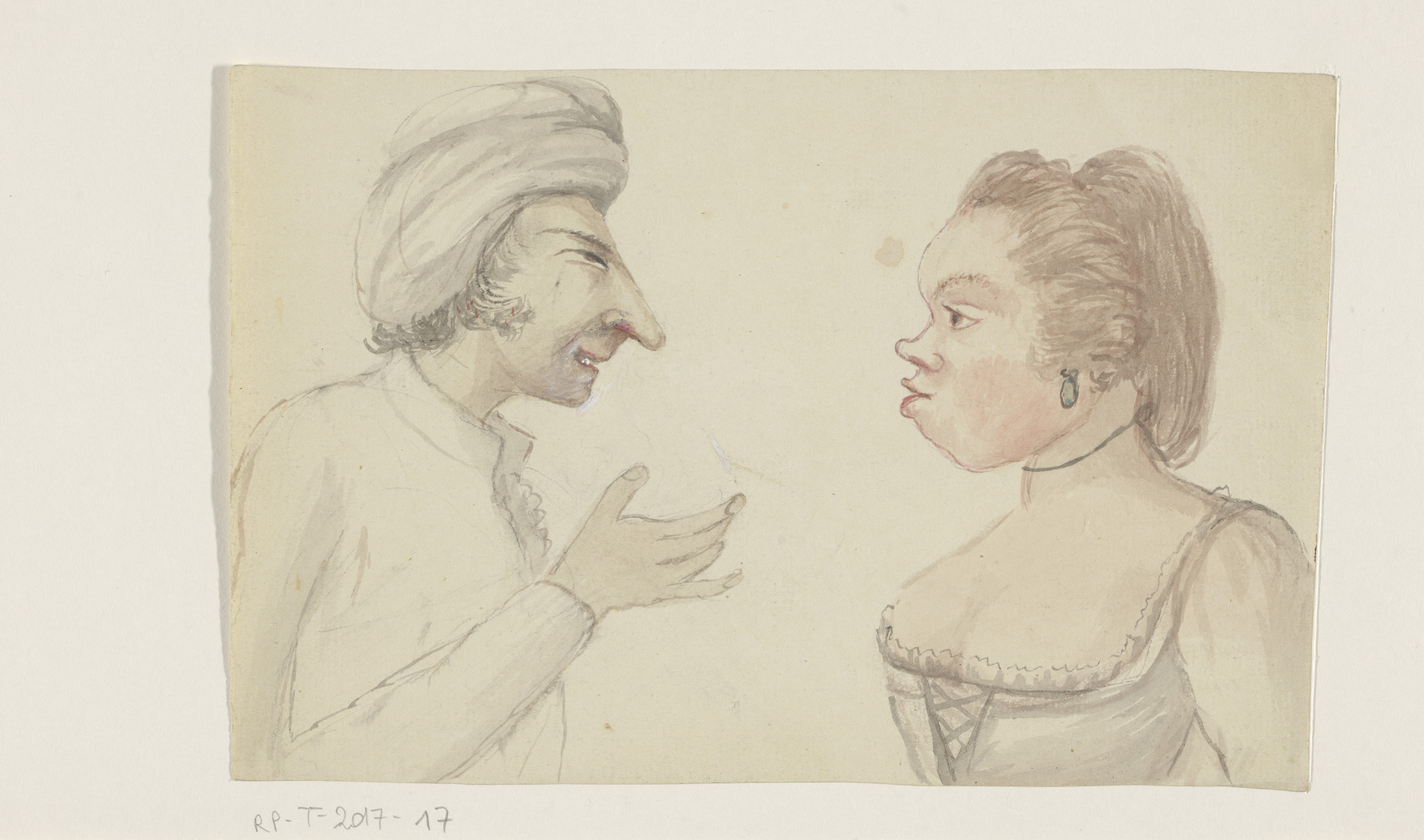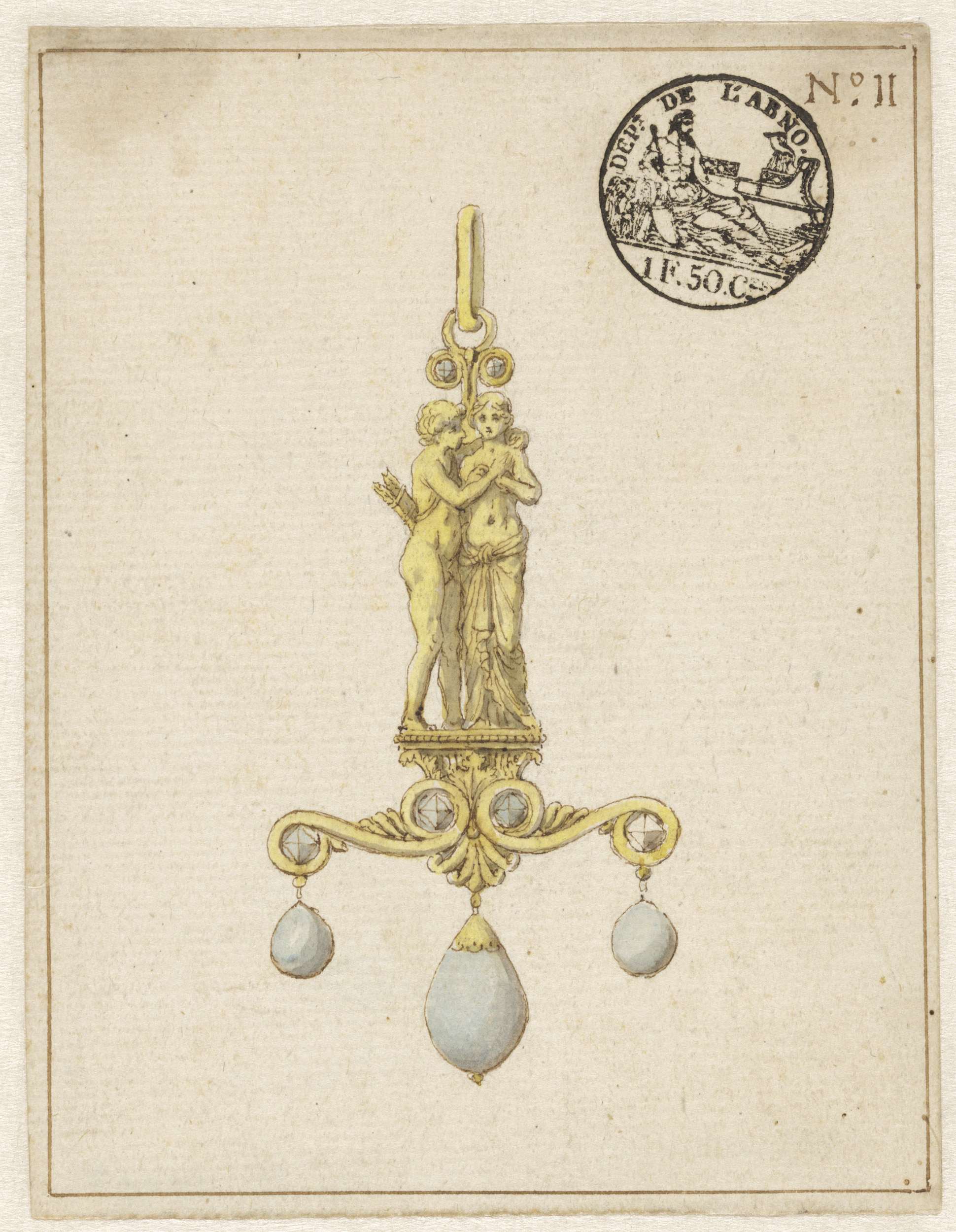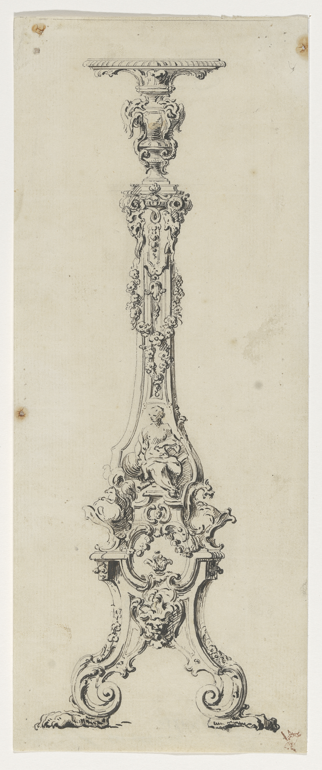 Ontwerp voor een kan met onder de tuit een naakte li...