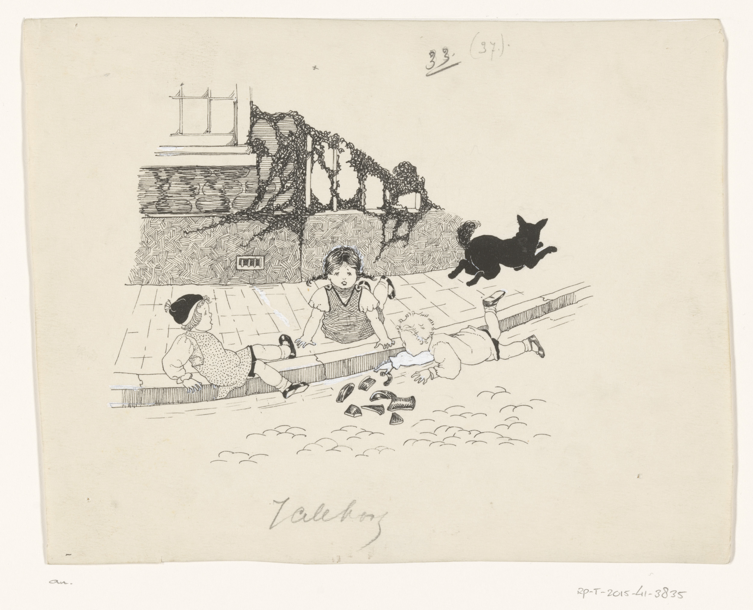 Vier illustraties bij: Nannie van Wehl, De buren, 1907