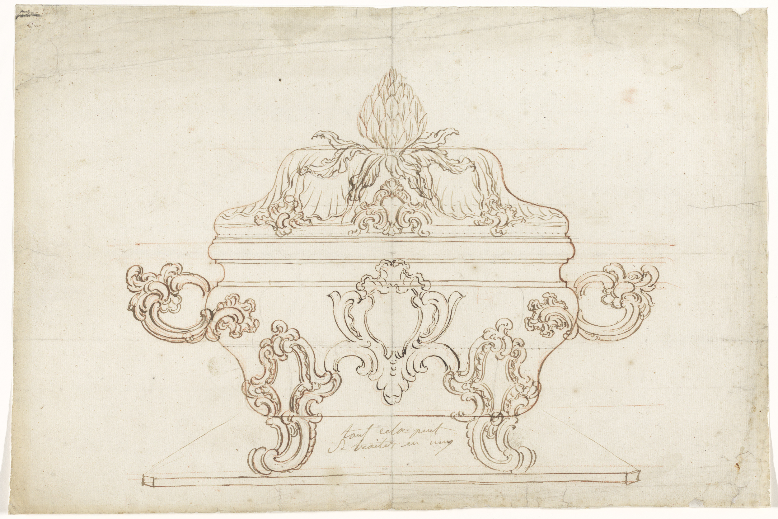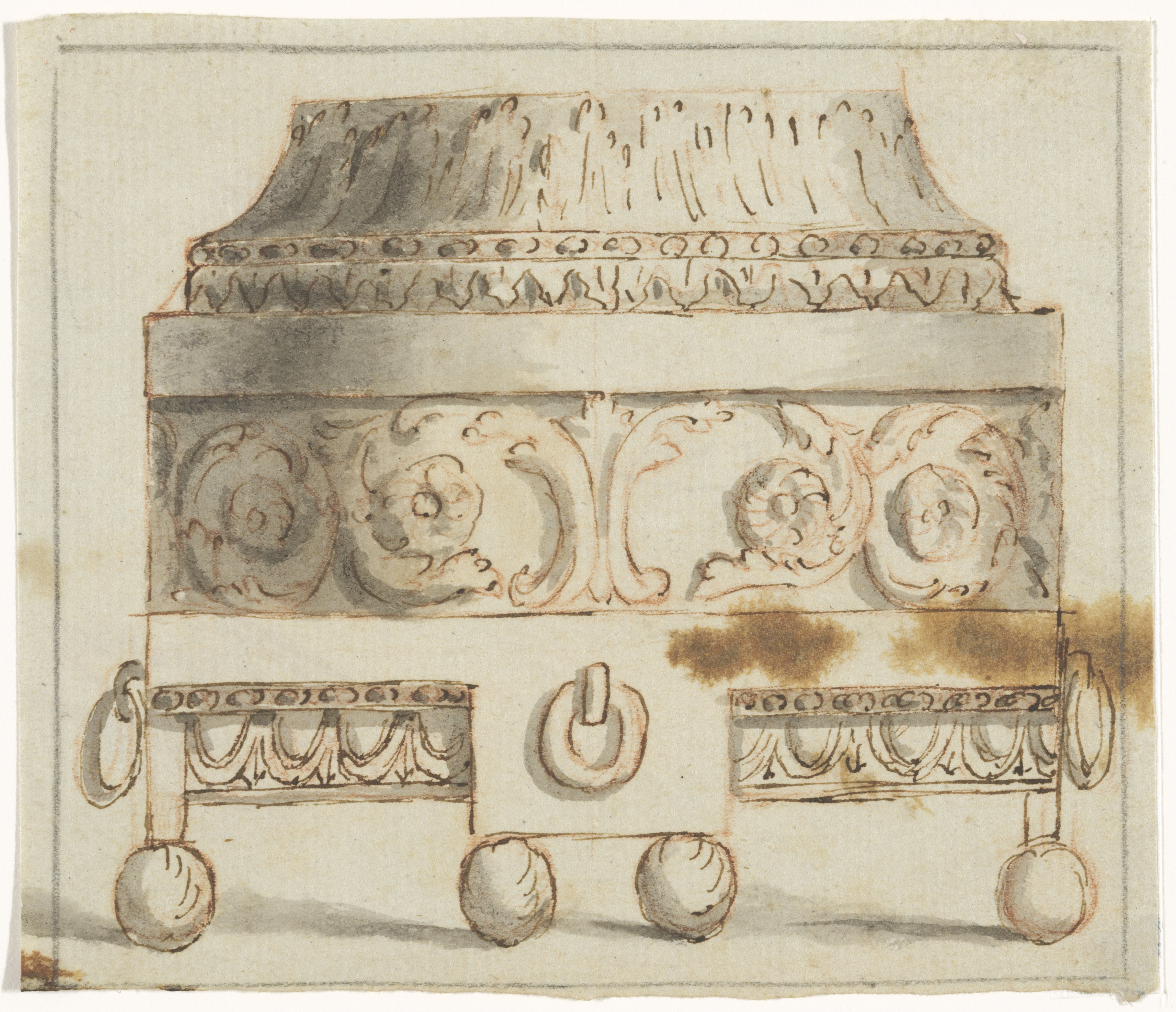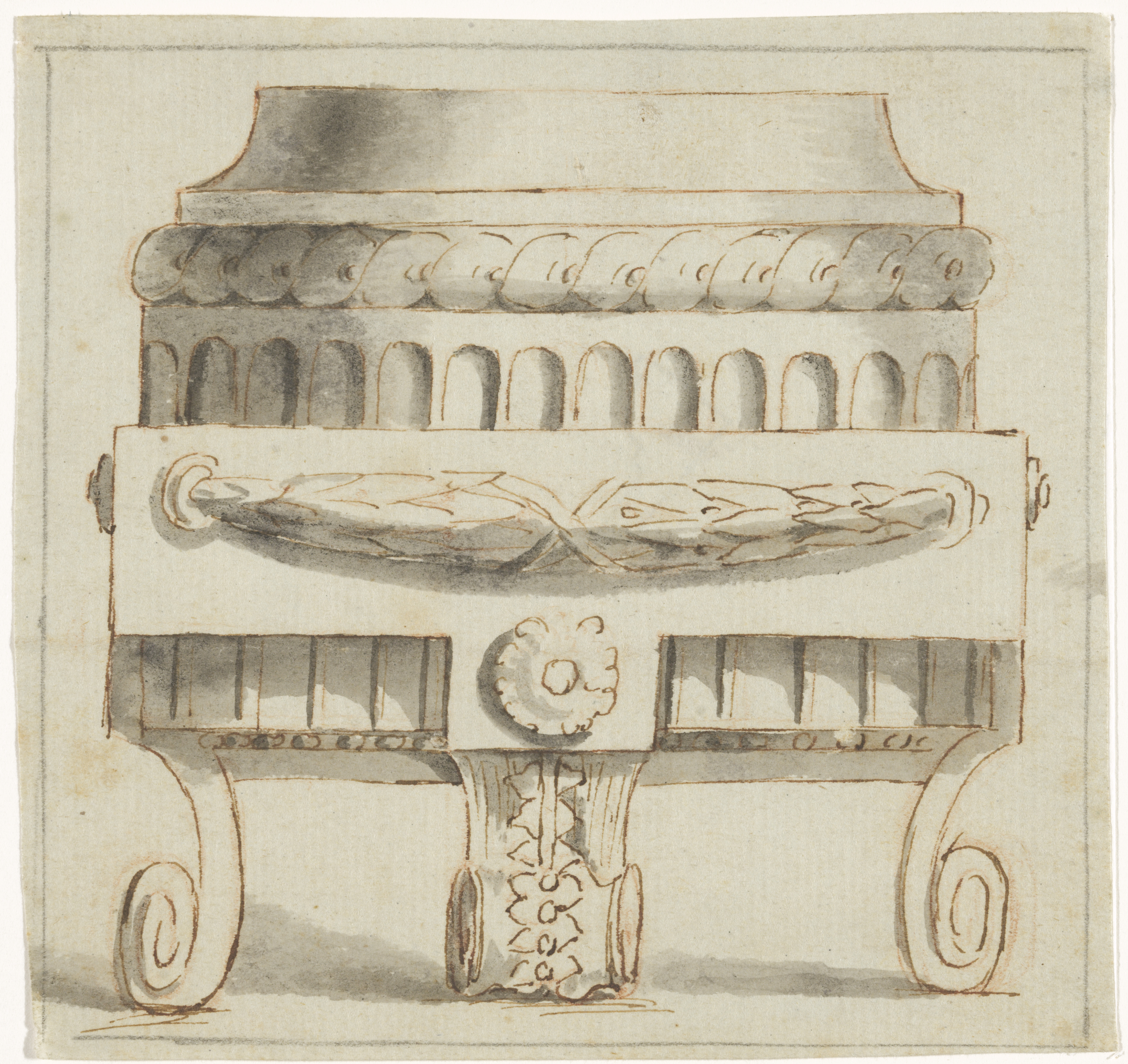 Ontwerp voor de gebeeldhouwde omlijsting van een sch...