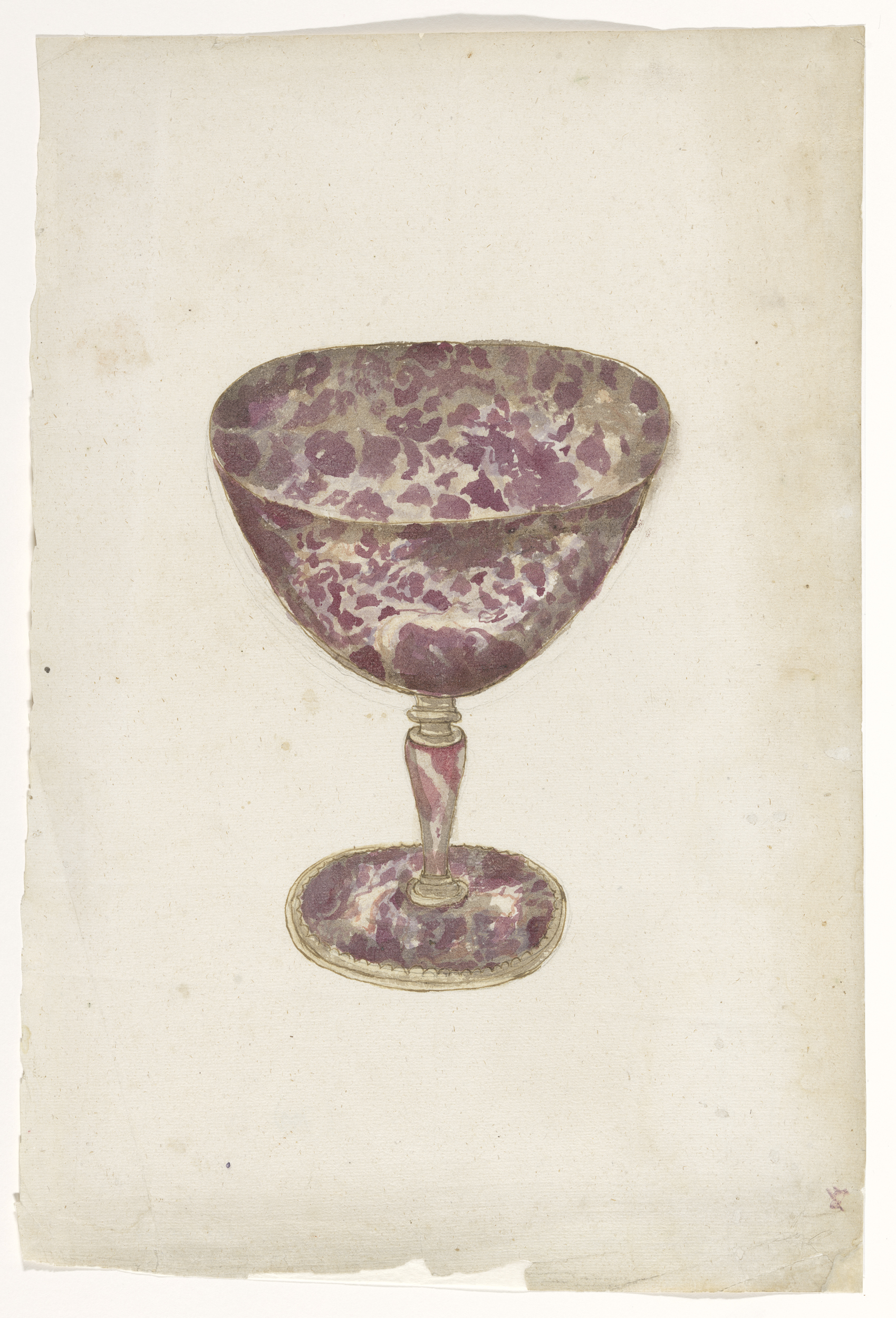 Tekening van een kelk van jaspis met goudbeslag