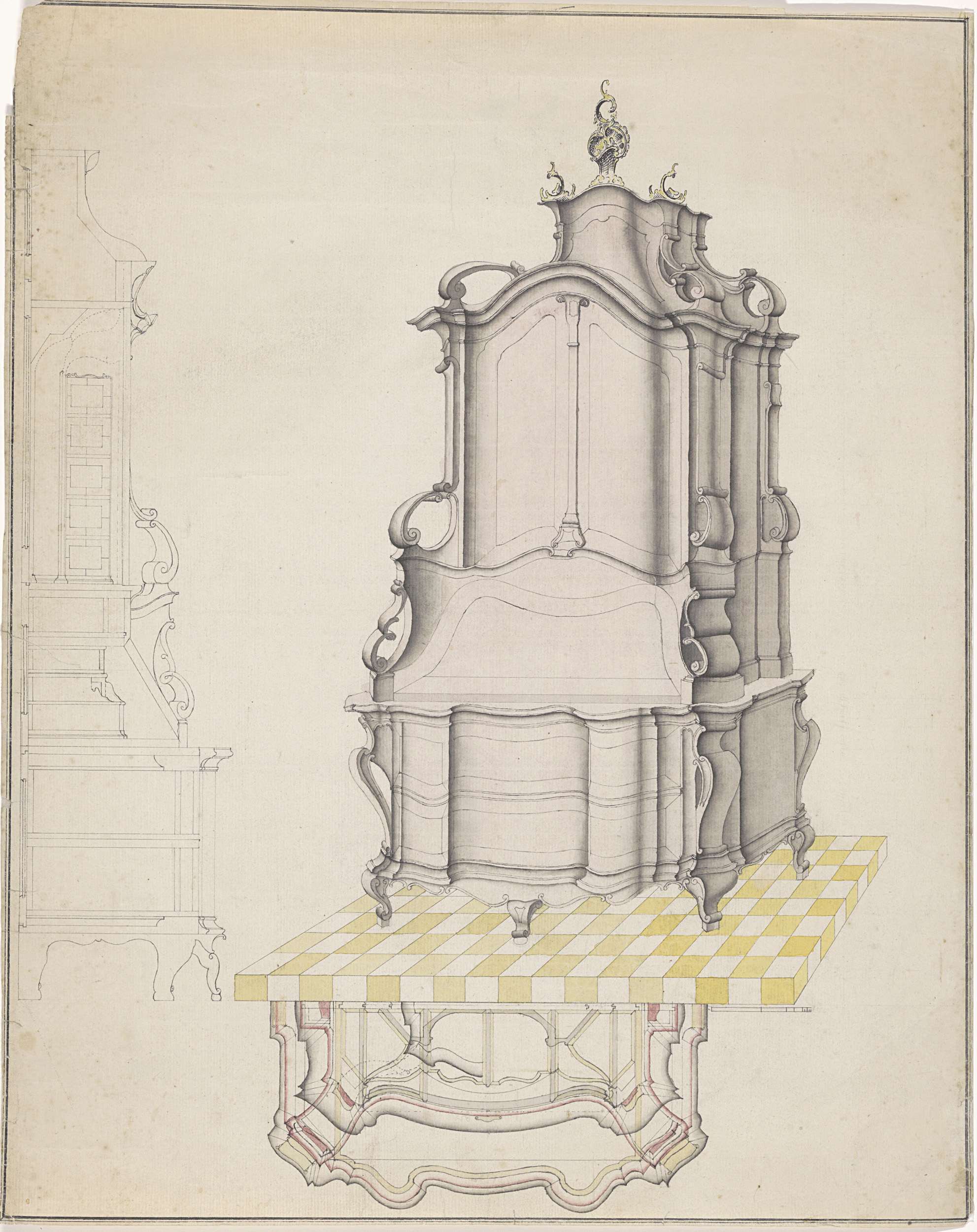 Ontwerp voor de kastwand van de hofapotheek te Ansbach