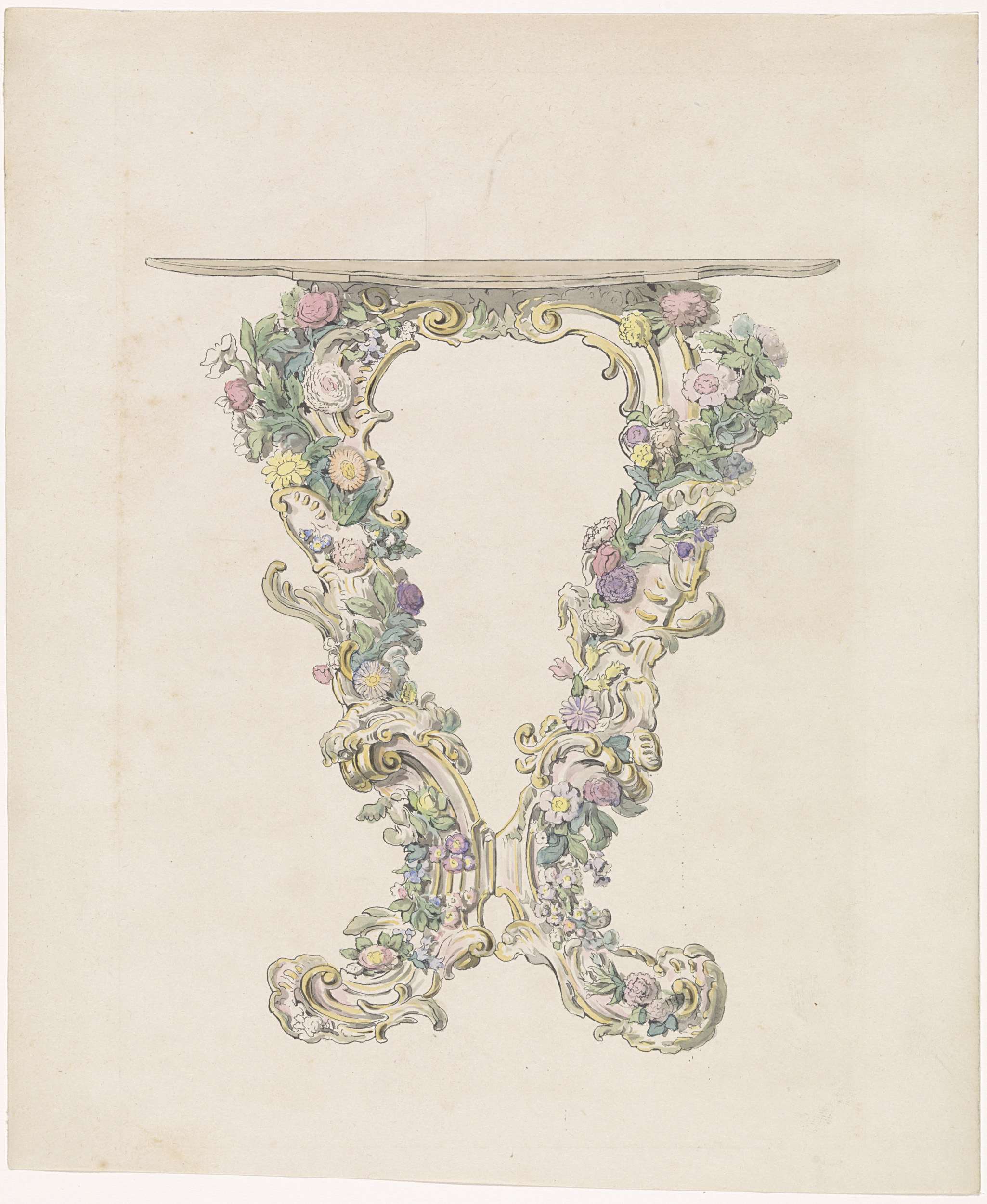 Ontwerp voor een consoletafel van porselein