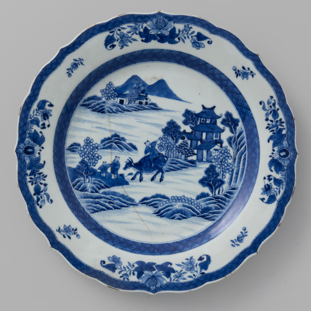 Ronde schotel behorende tot een Chinees blauw eetser...