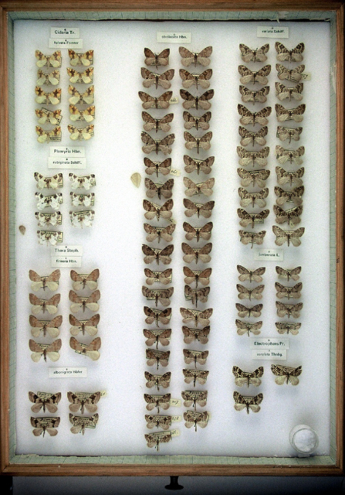 Vlinderdoos 085 van hout en glas met daarin vlinders...