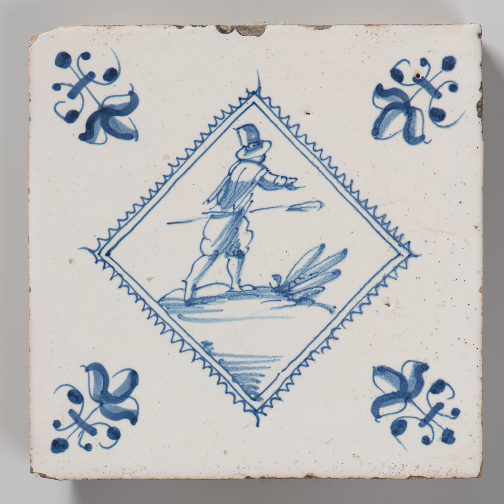 tegel van keramiek met tinglazuur, voorstellende: ma...