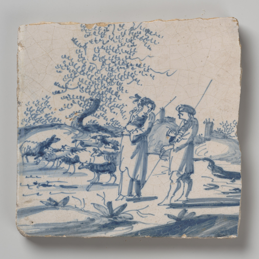 tegel van keramiek met tinglazuur, voorstellende: vl...