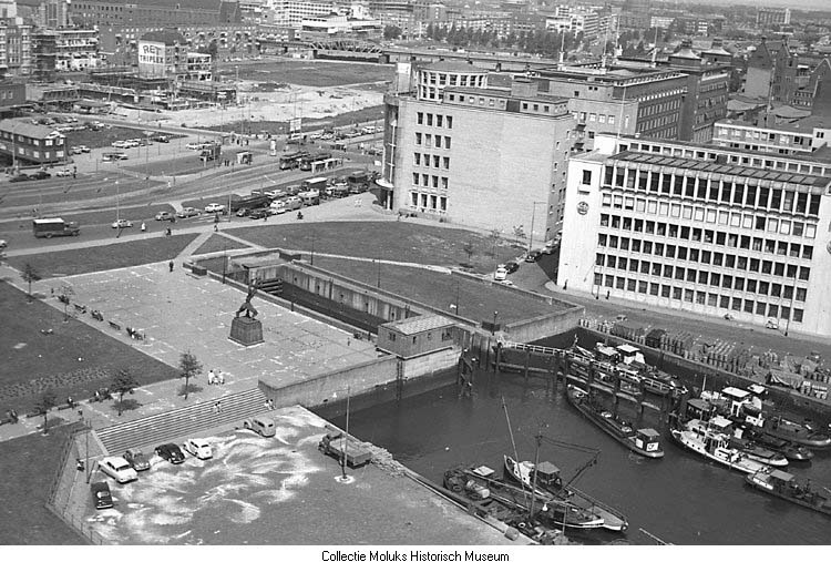 Gezicht op de haven en stad Rotterdam, eind jaren '50