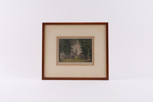 Ingekleurde gravure met zicht op de Midstraat van Jo...