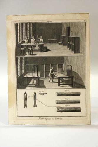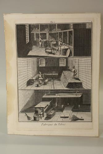 Gravure tabaksproductie (pag. 1) uit Encyclopedie Me...