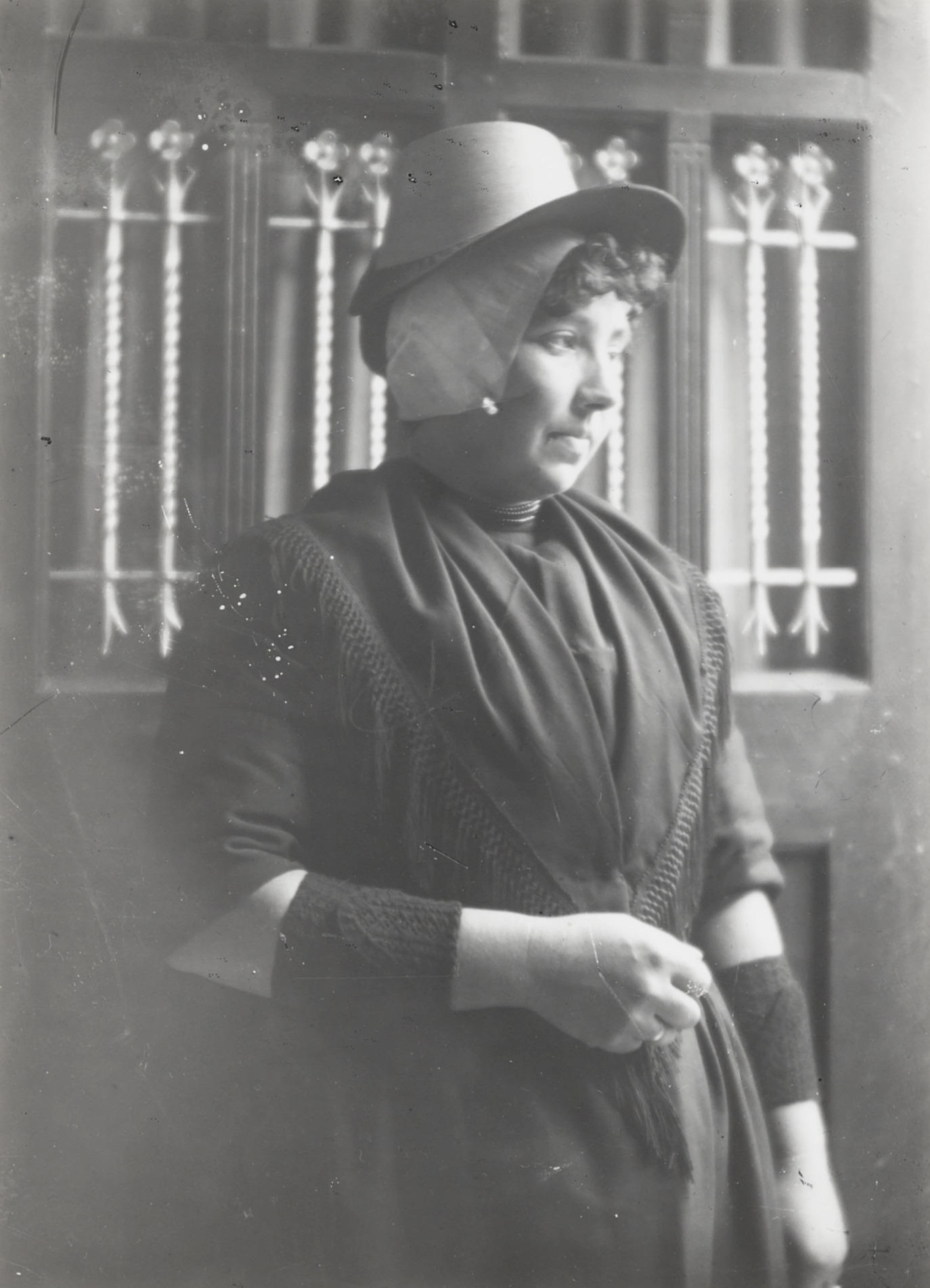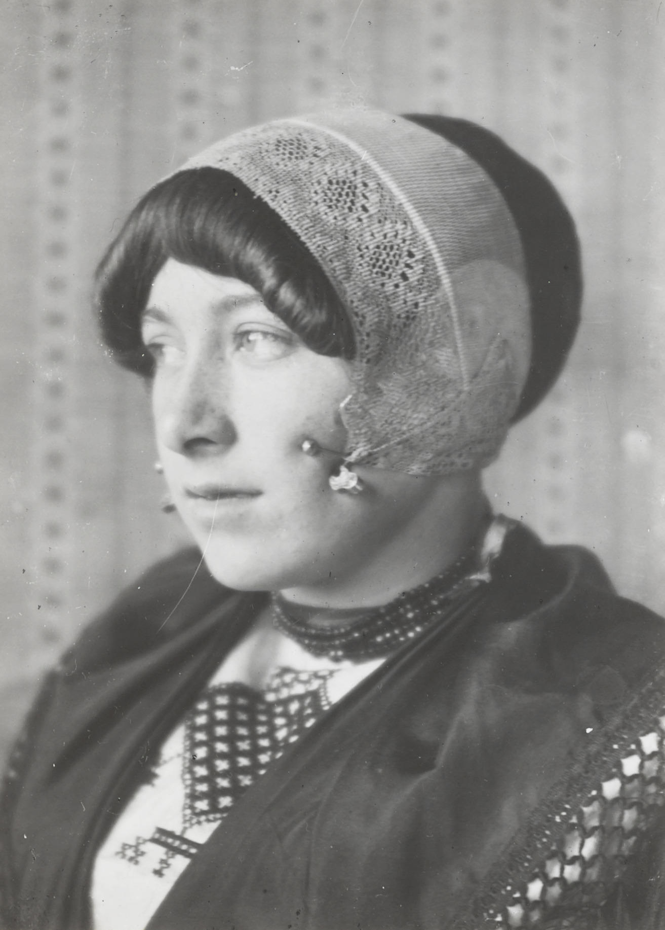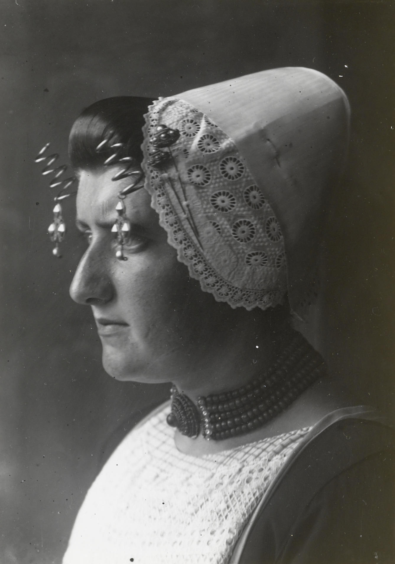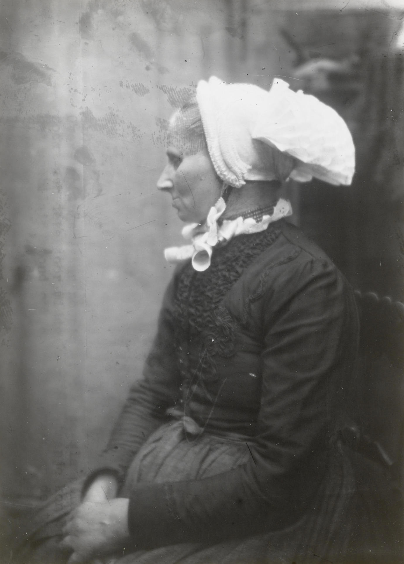 Vrouw in Hindelooper streekdracht, circa 1915 (zwart...