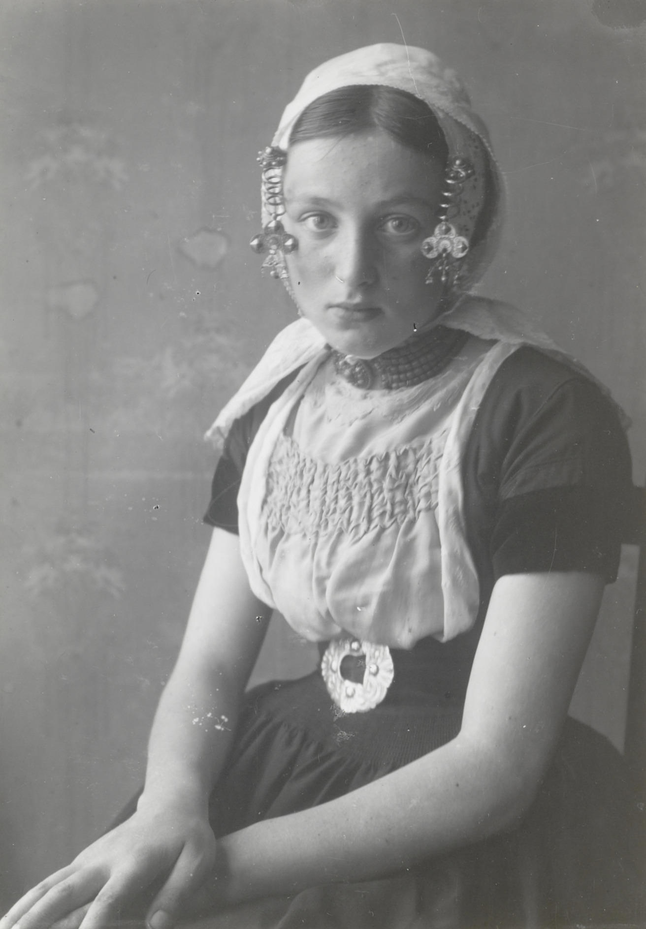 Meisje in Hindelooper dracht, circa 1915 (zwart-wit ...