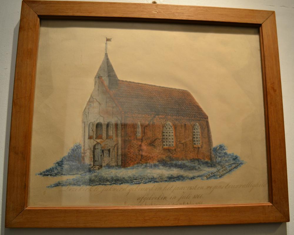 Schilderij van de oude kerk van Jukwerd