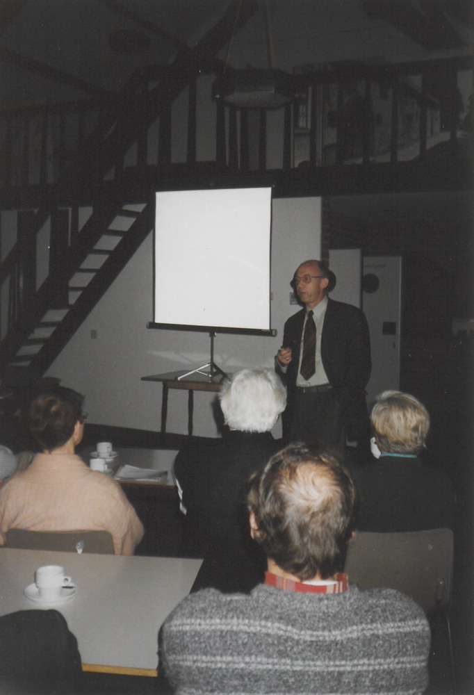 Dhr. Berendse tijdens zijn lezing over het ontstaan ...