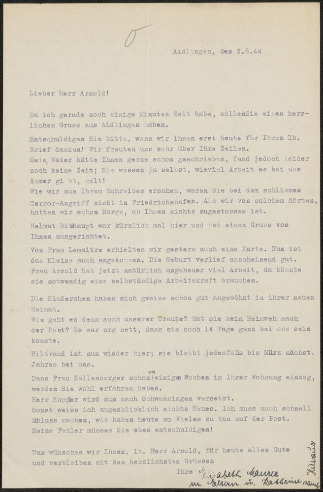 Brief aan Hubert van Elisabeth Maurer dd 2-06-1944