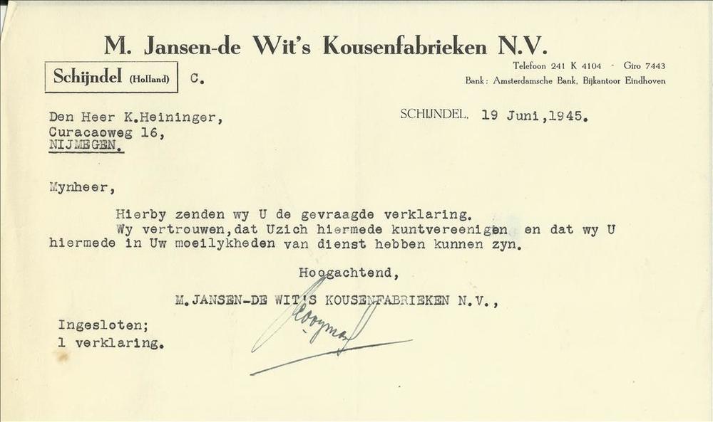 Brief va 2 mei 1944 aan de Heer Henri van Selst Maas...