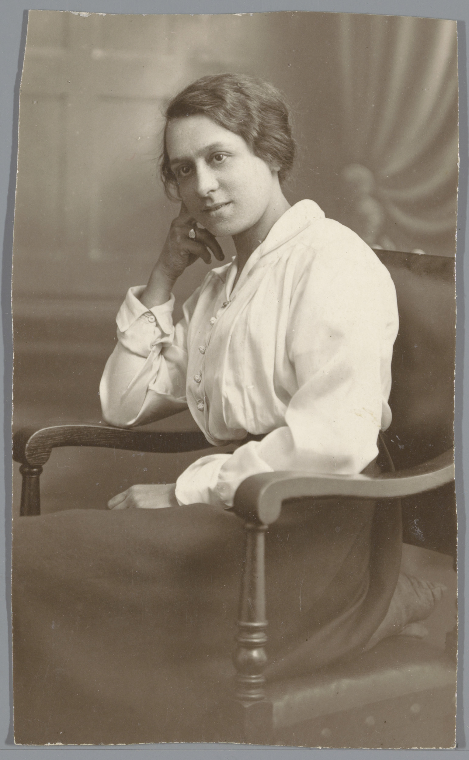 Portret van een onbekende vrouw zittend op een stoel