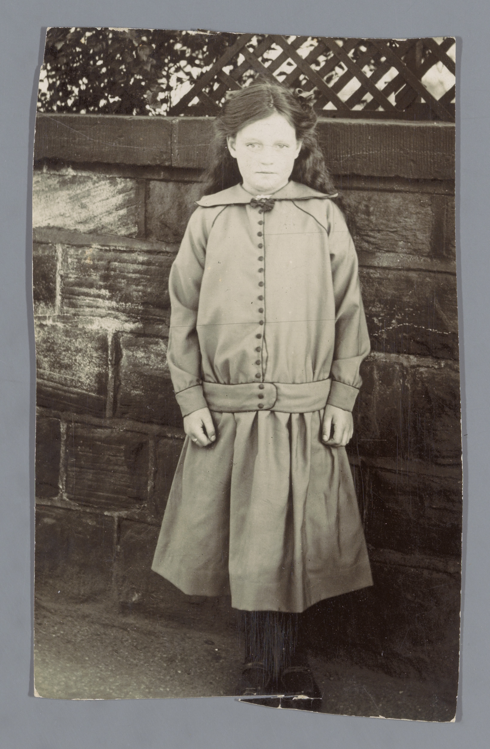 Portret van een onbekend meisje voor een buitenmuur
