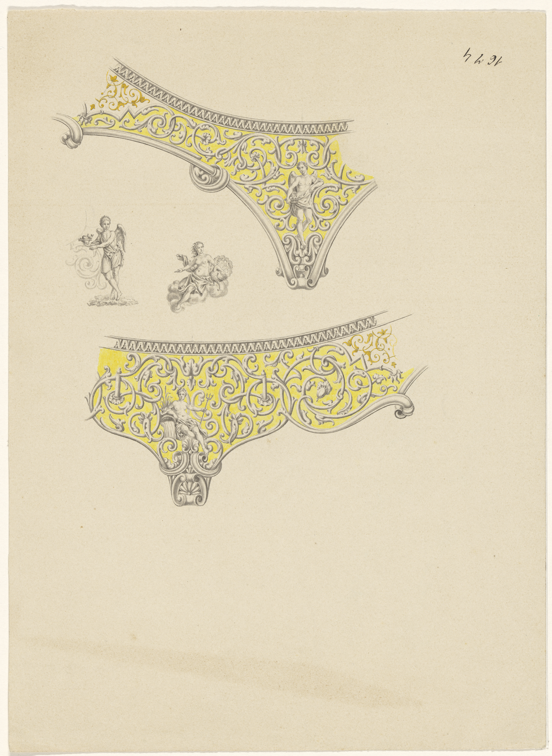Ontwerp voor het beslag van een boekband, met de hem...