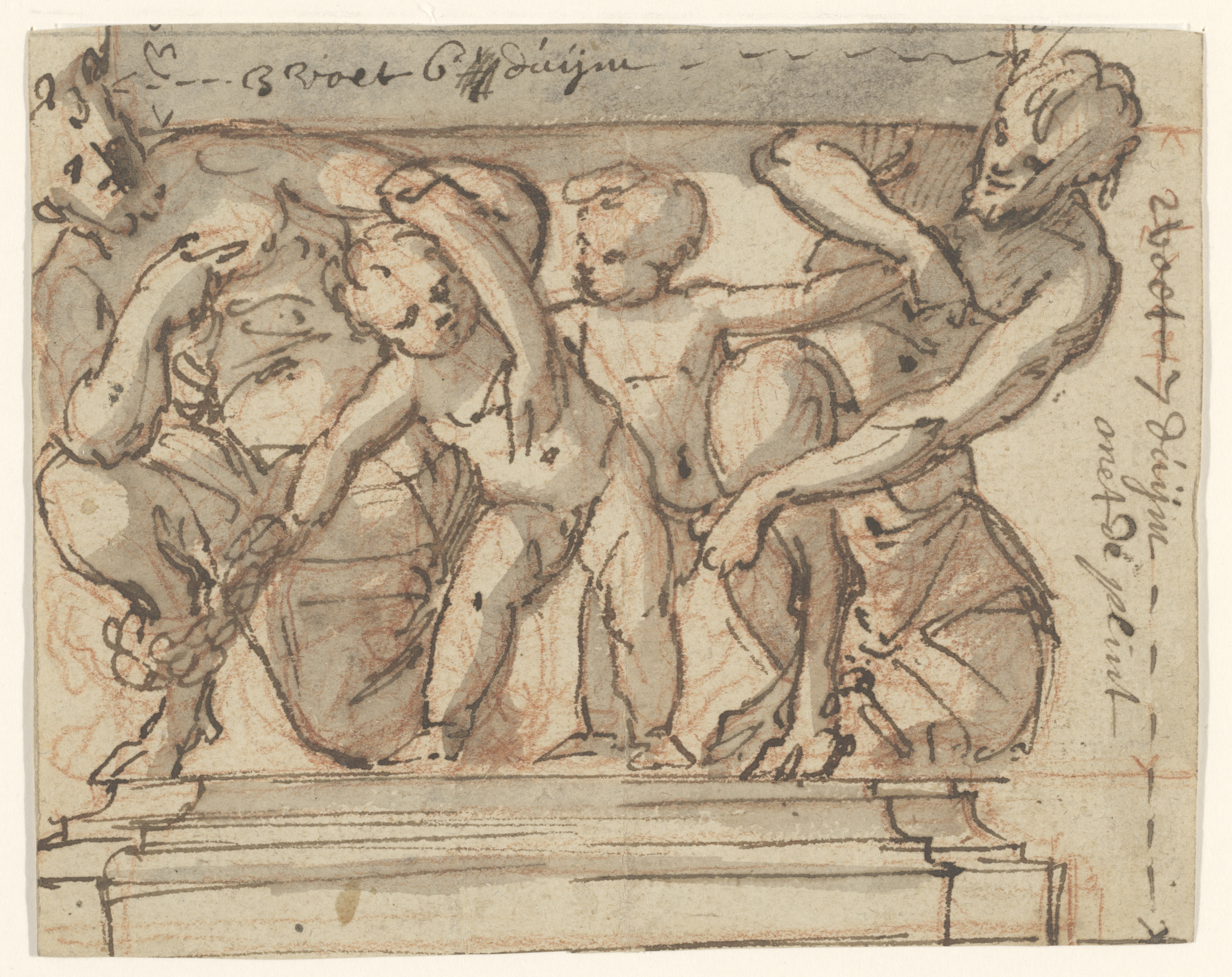 Ontwerp voor een gebeeldhouwde voet, waarschijnlijk ...