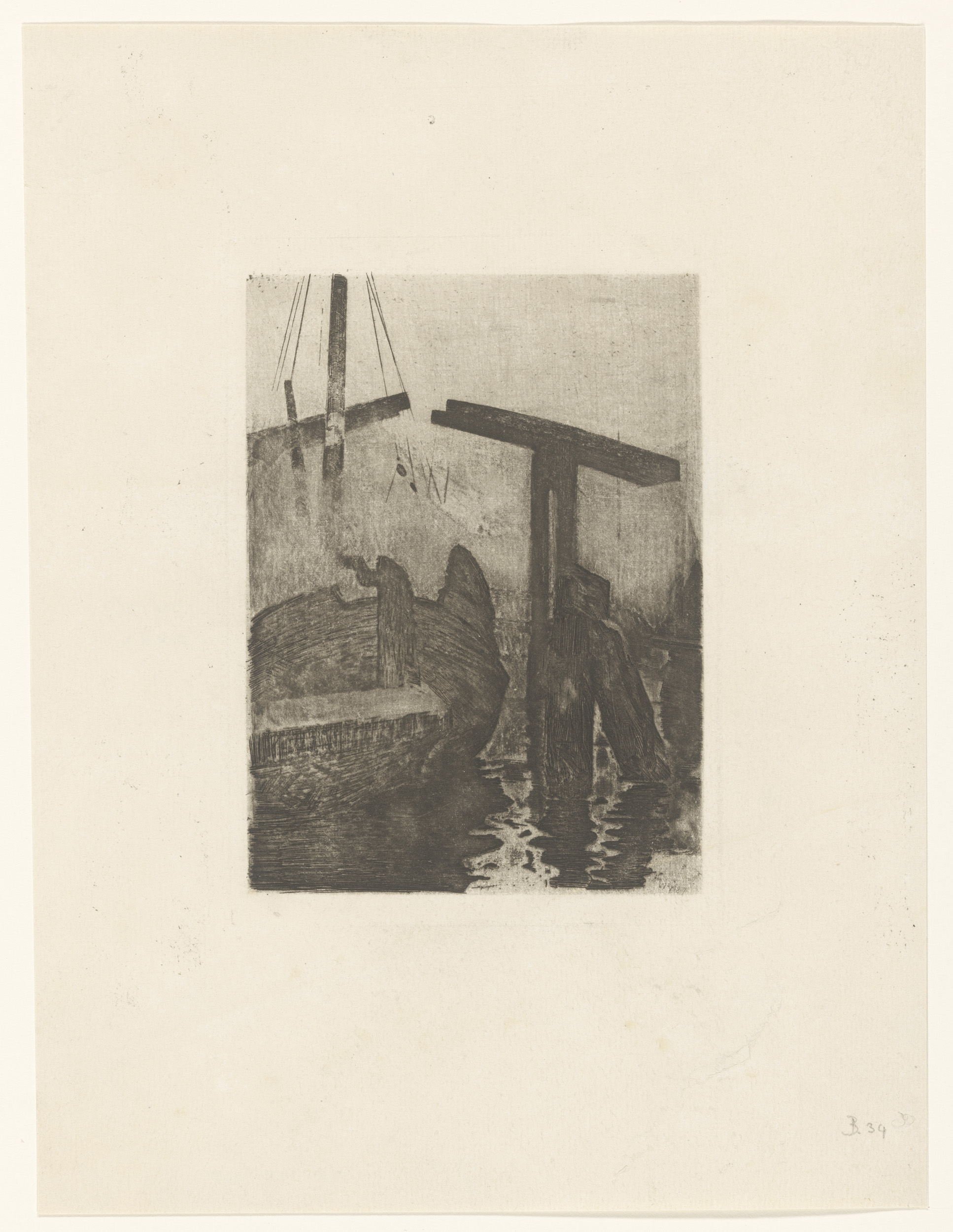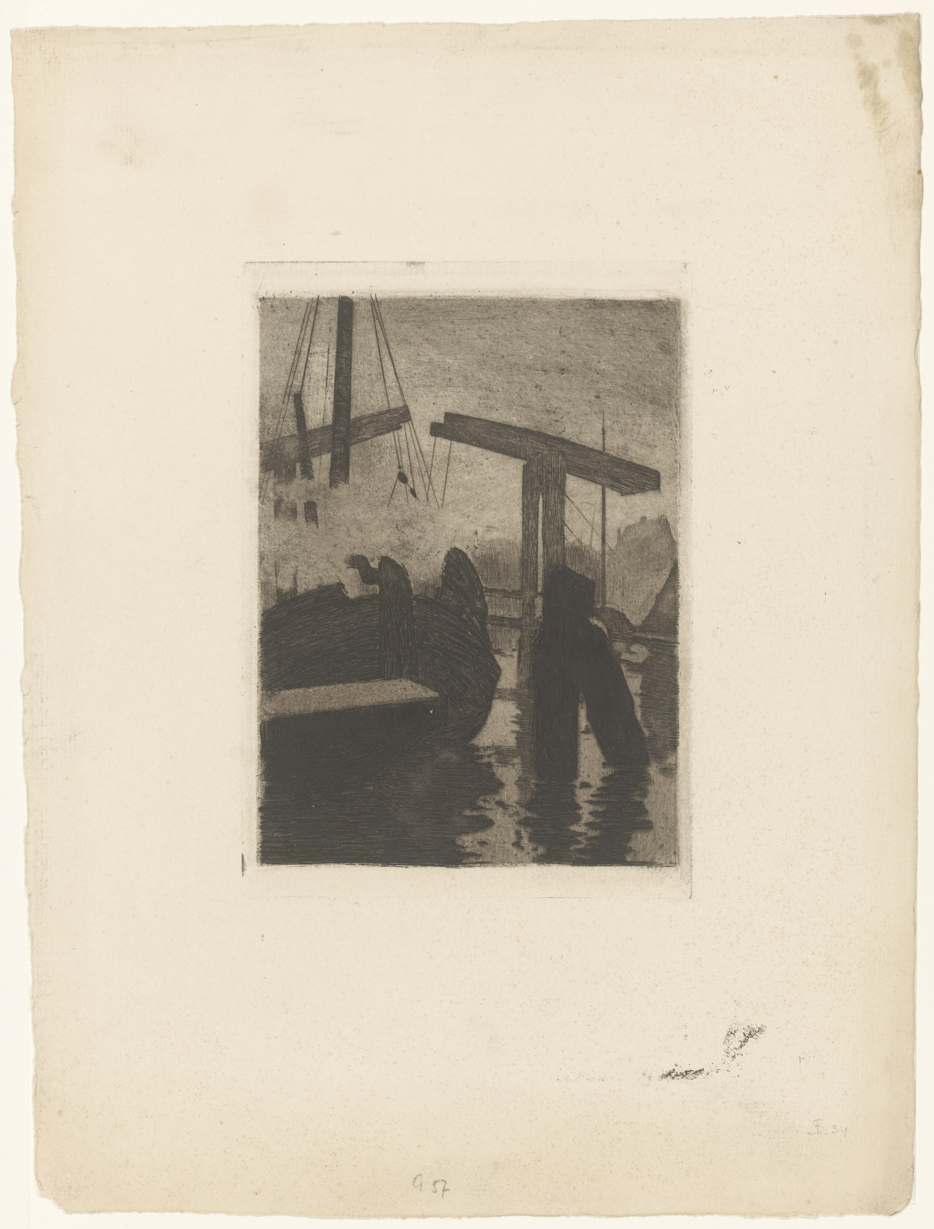 Gezicht op de ophaalbrug tussen de Kalkmarkt en het ...