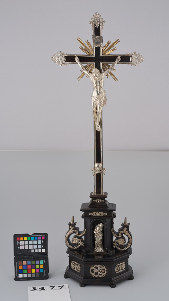 Kruis met corpus, van ebbenhout en plaatzilver, anon...