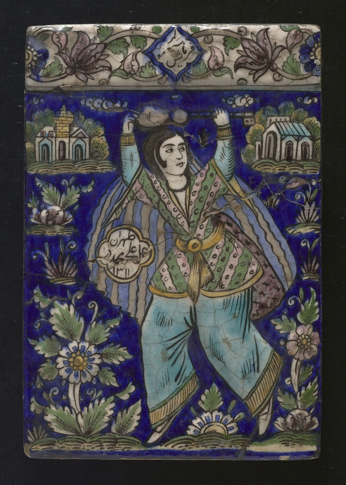 Tegel van aardewerk, voorstellende een dansende vrou...