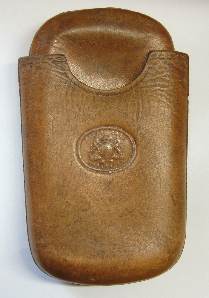 sigarenkoker. Licht bruine leren koker bestaande uit...